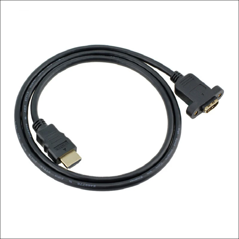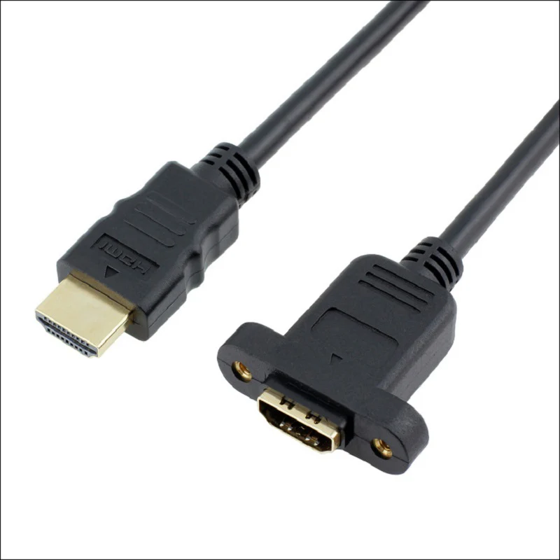 Cable de extensión de montaje en panel de tornillo HDMI 1.4 macho a hembra chapado en oro 3D UHD TV de alta velocidad