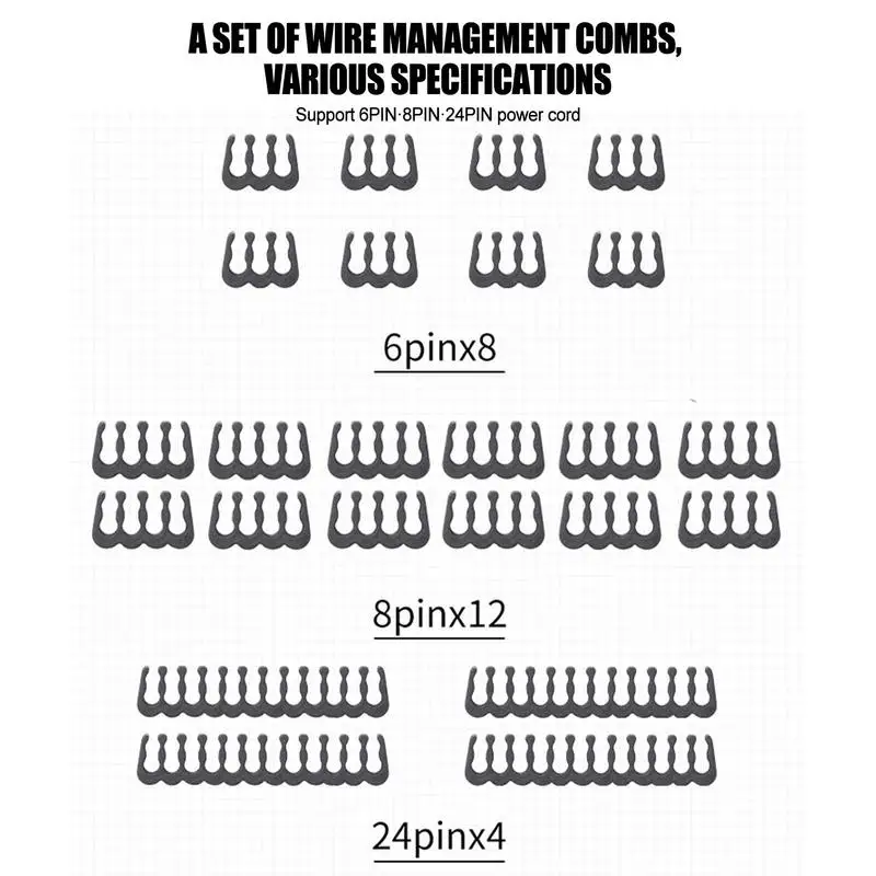 Descripción:PC , 24 piezas de extensión S para 3,0 a 3,6mm 6 pines/8 pines/24 pines PSU Cables de extensión, Cable de alimentación de computadora Gestión de cables Peine Abrazadera Clip Kit organizador, Negro, Blanco