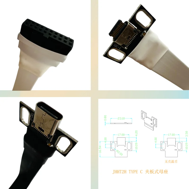 Comprar Cable de extensión de Panel frontal hembra USB 3,0 tipo C a 19P 20 pines para placa base, Conector de PC, extensor con orificios de tornillo