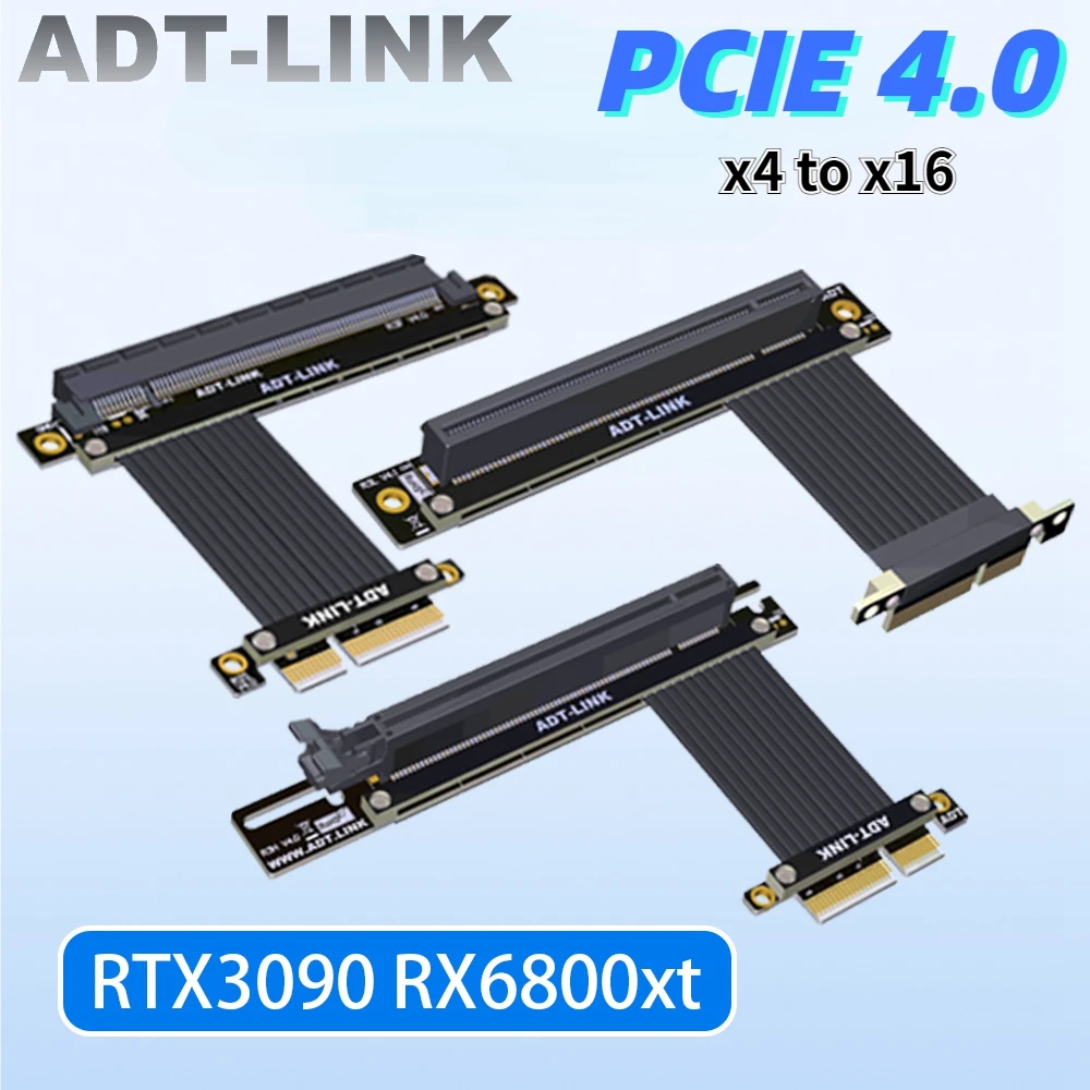 Comprar Cable de extensión PCI-E 4,0 X4 a X16, doble ángulo recto de 90 grados, RTX3090, RX6800xt, PCIe 4,0, 4x a 16x, Riser, extensor, adaptador