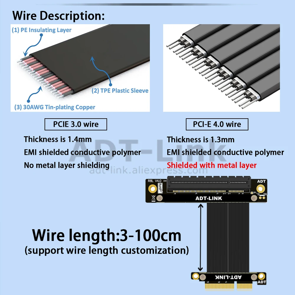 Comprar Cable de extensión PCI Express X8 4,0 A X4, puente elevador PCI-E de alta velocidad, giro de 90 grados, SSD gráfico GPU 1U extendido a ranura 8x 4x