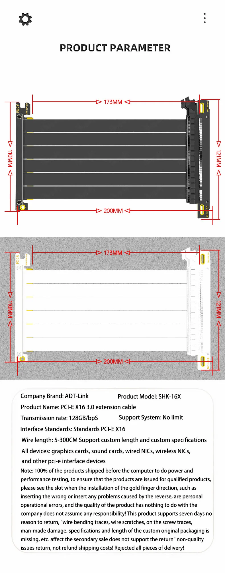 Comprar Cable de extensión PCIe 3,0x16 A x16 Gen3 Flexible GPU Riser para ITX A4 K39 K55 G5