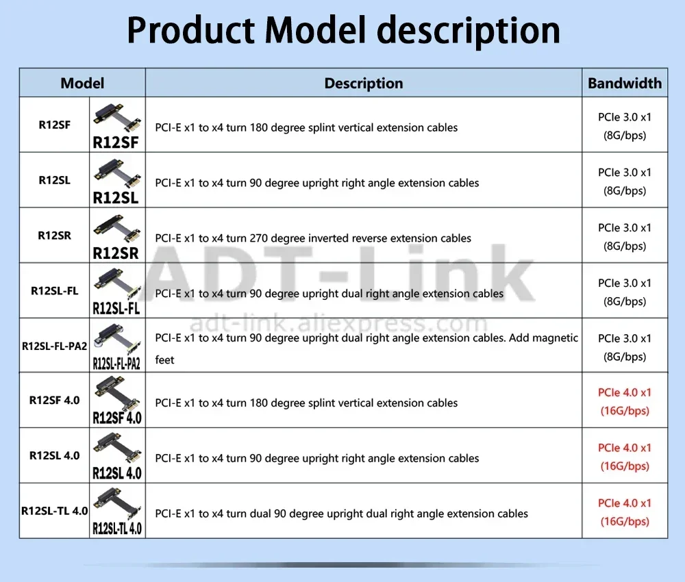 Product Name: PCIe x1 to x4 extension cable