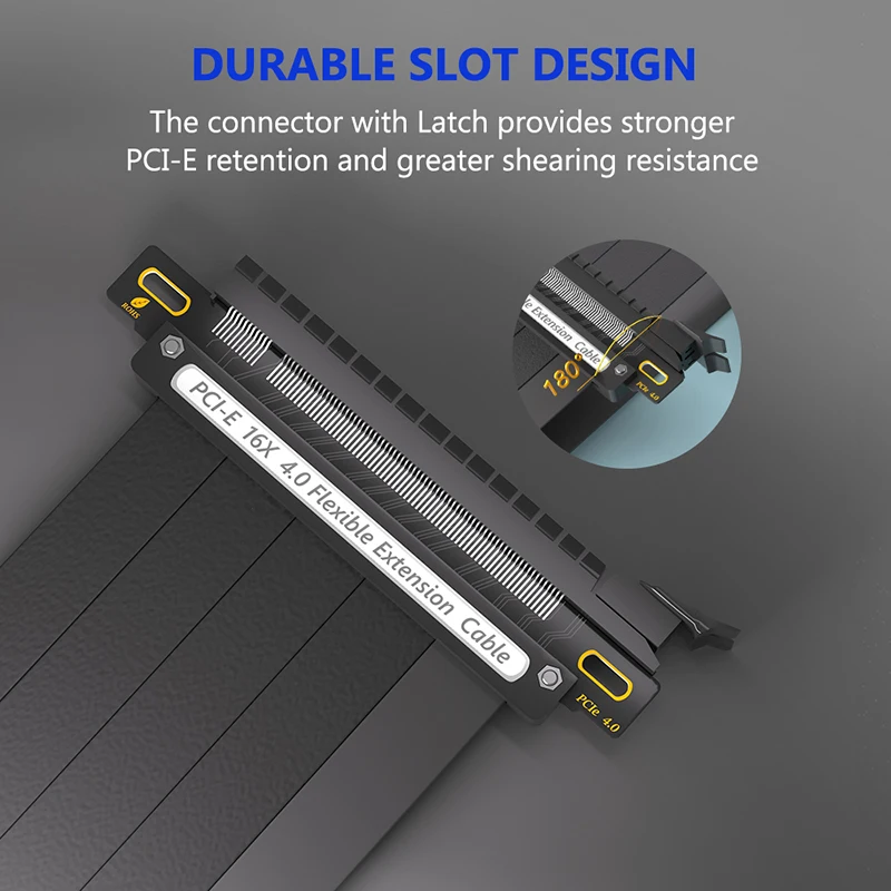 2. Cable plateado importado con hasta 64GBS, en línea con el estándar de transmisión PCIE 4,0 y sigue siendo compatible con versiones anteriores con una velocidad de transferencia máxima. La fuente de alimentación mejorada de 12V con cable plateado de 12 pines ofrece 12V para satisfacer las necesidades de 4090 tarjetas gráficas de alta potencia.