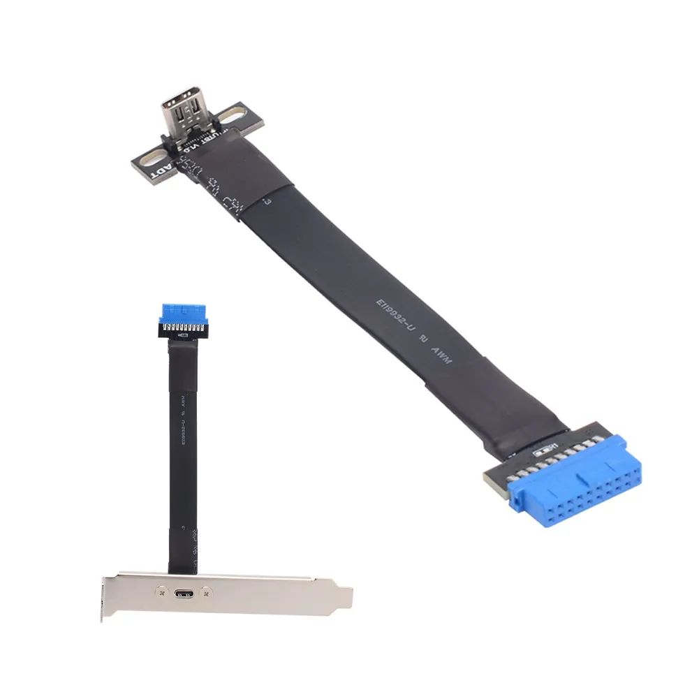Comprar Cable de extensión plano de expansión con soporte de deflector PCI para ITX A4, USB 3,0, 19Pin/20Pin, macho a tipo C, hembra de ángulo recto