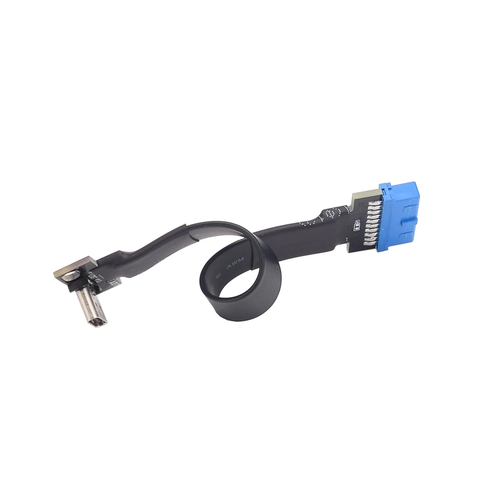 Cable interno USB 3.0 de 19 pines/20 pines macho a tipo C de expansión hembra de ángulo recto FPV Cable de extensión FFC de cinta plana flexible con deflector de soporte PCI para chasis ITX A4