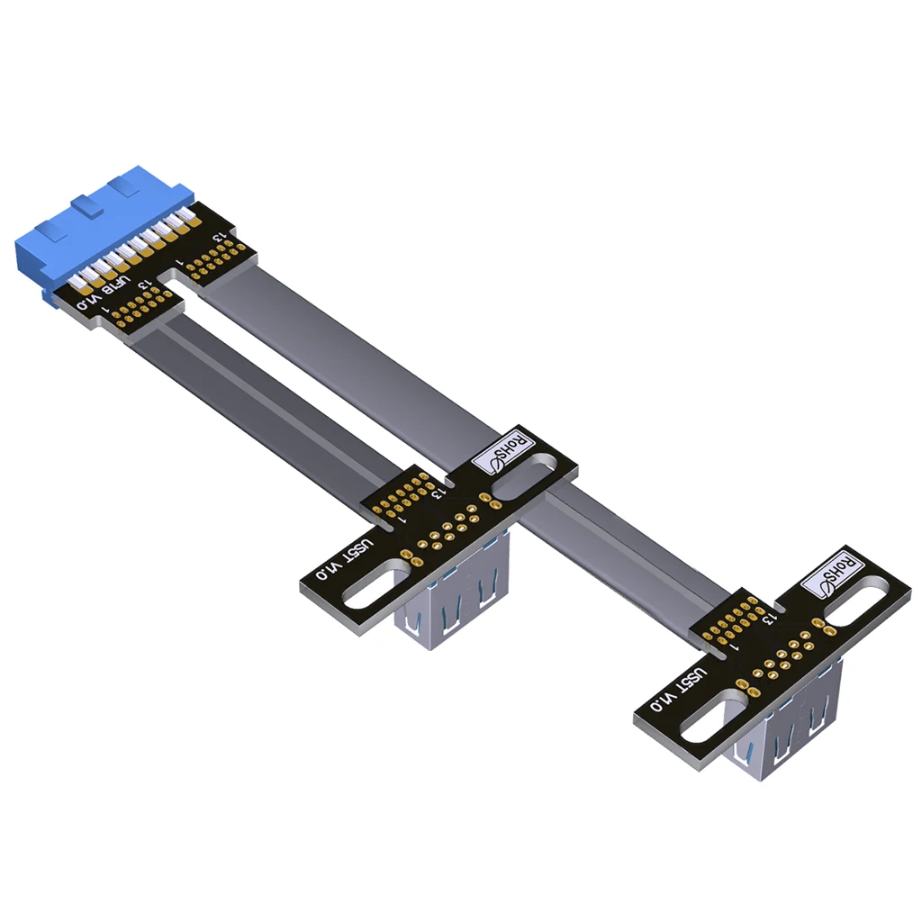 Cable de extensión plano USB3.0, interfaz Dual tipo A a interno 19/20P, 2x USB 3,0, Cable adaptador de datos de dos puertos con orificio para tornillo