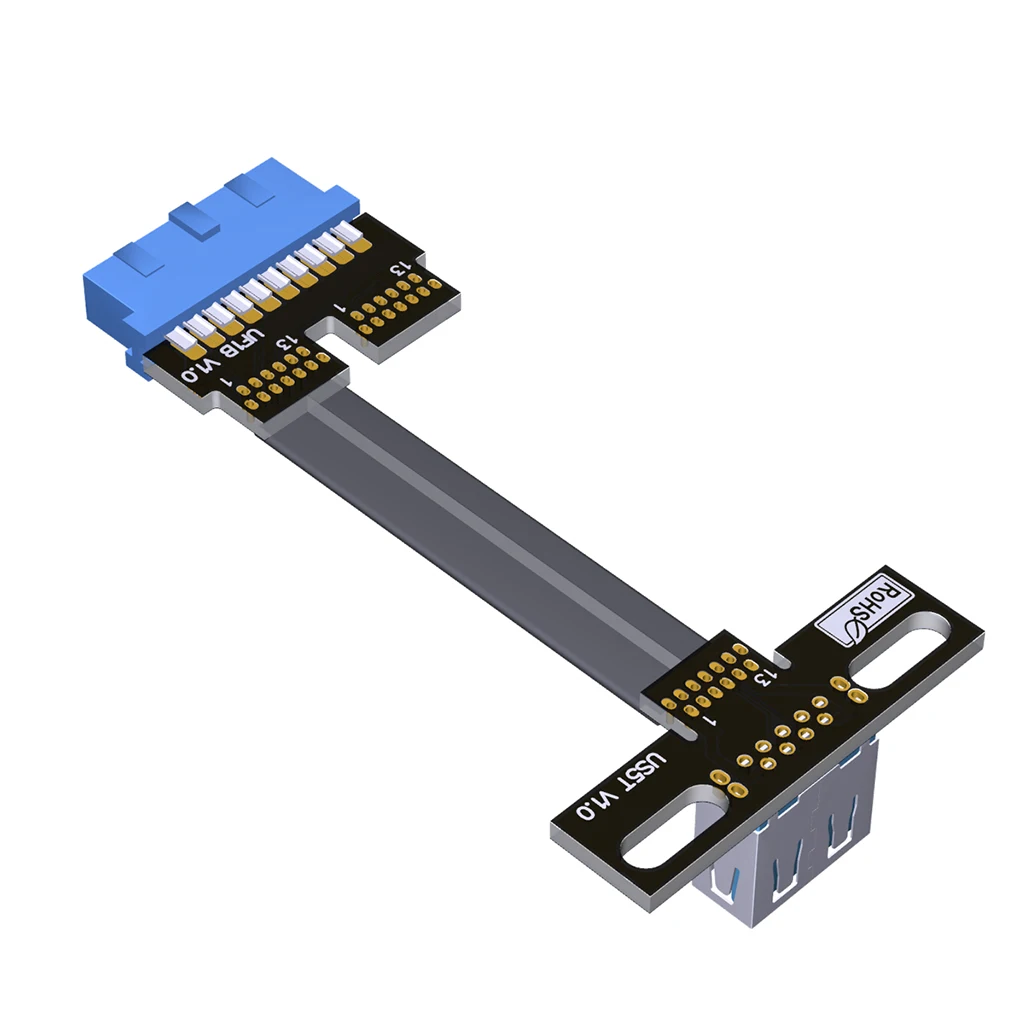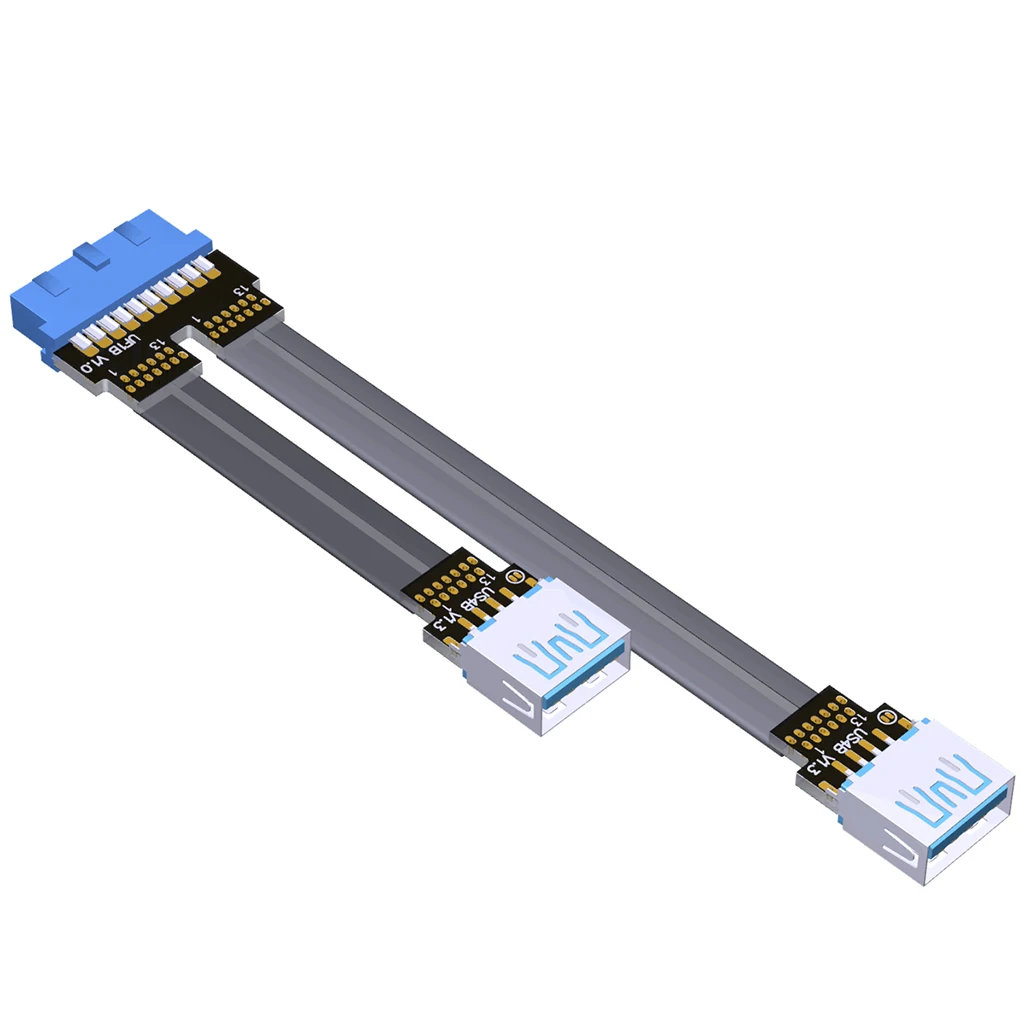 Comprar Cable de extensión plano USB3.0, adaptador de datos con orificio de tornillo, interfaz Dual tipo A puertos internos 19/20P, 2x puertos USB 3,0 USB-A
