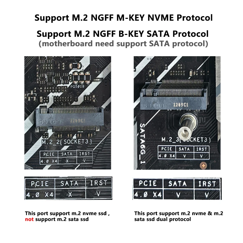 3.Admite SSD de bus NVME PCI-E y es adecuado para SSD de bus SATA (necesita que la placa base admita el protocolo m.2 sata)