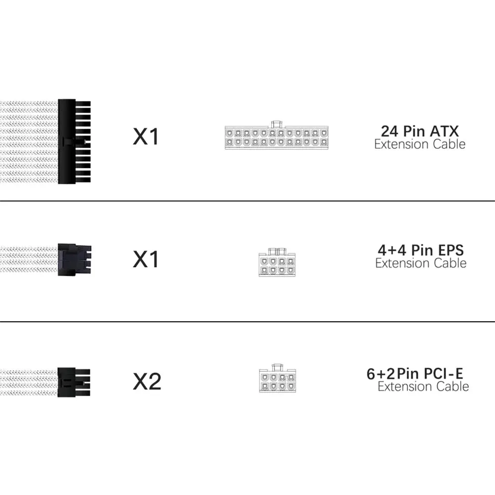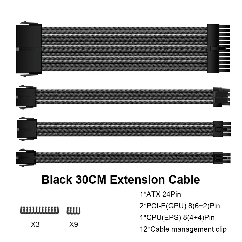 300mm PSU cable de extensión 18AWG cable de alimentación 4 Kit placa base ATX 24Pin GPU PCI-E 6 + 2Pin 8Pin CPU EPS 4 + 4Pin