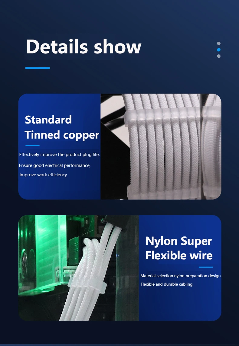 12x CablemanagementclipsP: ¿Se pueden usar solos sin otras extensiones?R: Son extensiones y no cables modulares reales para la fuente de alimentación, solo hacenExtensiones a los cables existentesP: ¿Son compatibles con la serie GeForce RTX 40?A: Soporte GeForce RTX 4070, RTX 4060 Ti y RTX 4060 con interfaz de 8 pinesP: ¿Funcionará esto con cualquier fuente de alimentación?R: Son una extensión, no se conectan a la fuente de alimentación en sí, por lo que funcionan con cualquier fuente de alimentación.Notas de compra:1. Debido a la diferente configuración de pantalla de cada computadora, las imágenes y los objetos reales serán ligeramente de color diferente.2. Los cables han sido ensamblados Todos, por favor no desmontar a voluntad* Si necesita un ajuste de bricolaje, preste atención al uso de herramientas especiales y no use demasiada fuerza.3. Cada cable tiene tres peines. * El color del peine está sujeto a la imagen del kit de cable.En caso de actualización a la apariencia y estructura, o diferentes lotes de material, sin más aviso, el objeto real prevalecerá.El contenido real del producto y la cantidad se enviarán de acuerdo con la opción del kit que seleccionó.