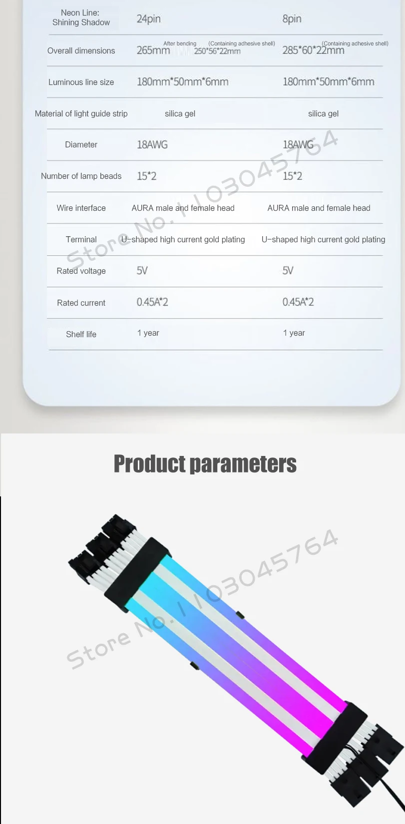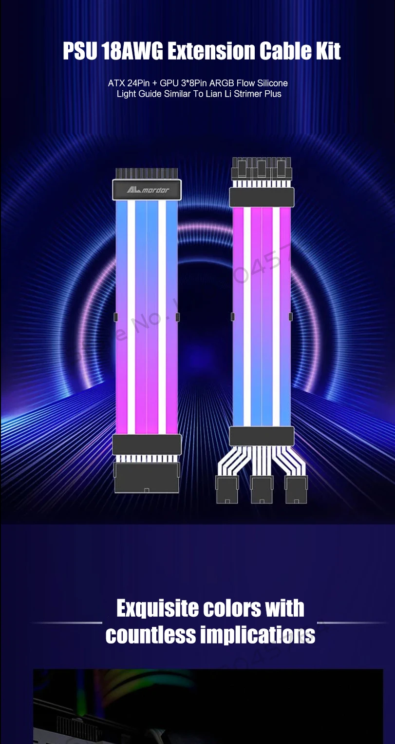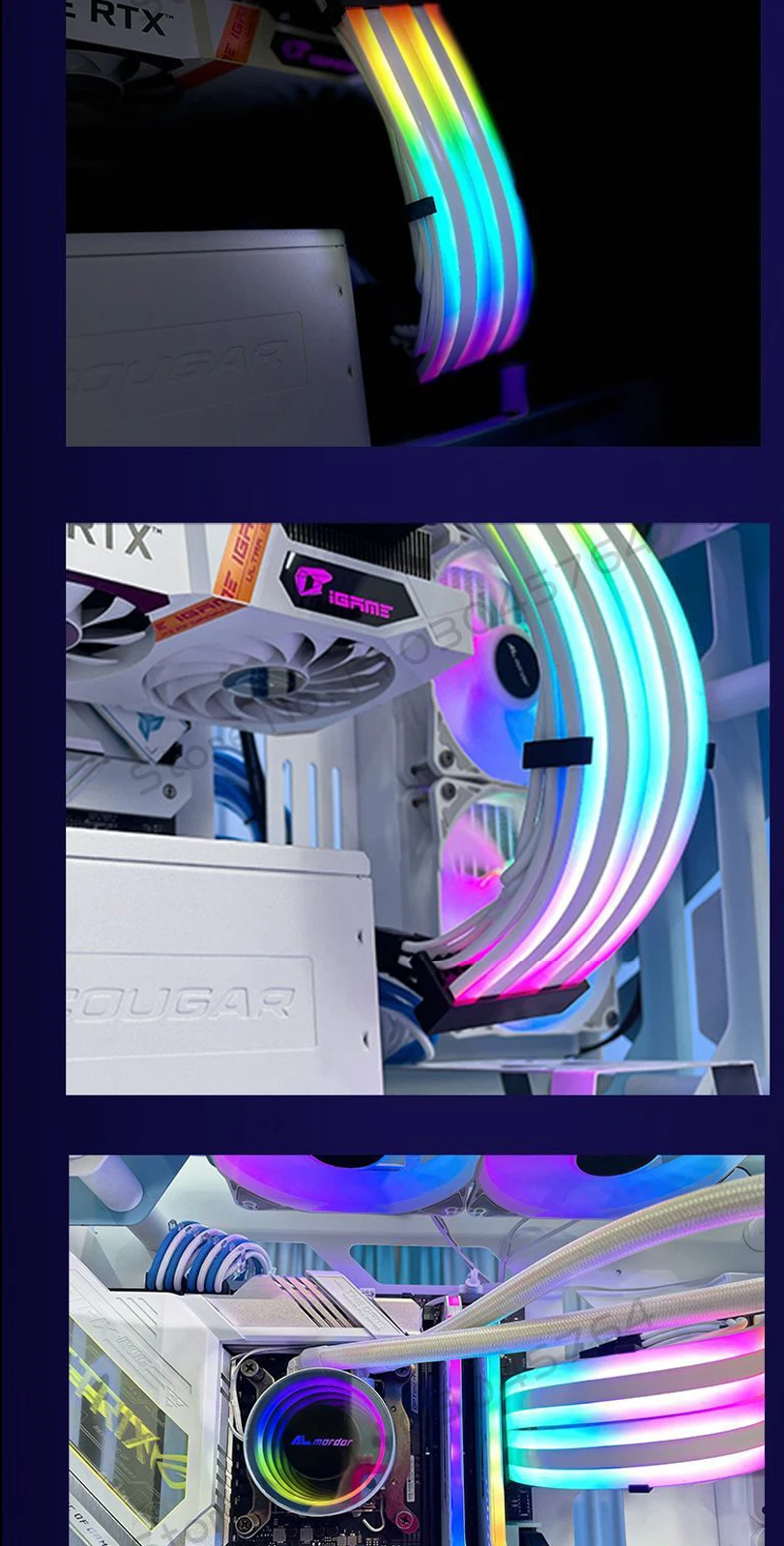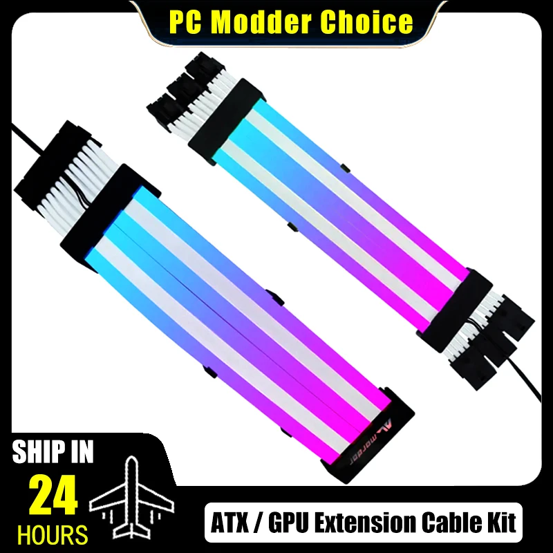 Comprar Cable de extensión PSU ARGB Kit ATX 24 pines + GPU 8 pines X2 X3 guía de luz de silicona de flujo LED 18AWG Similar a Lian Li Strimer Plus