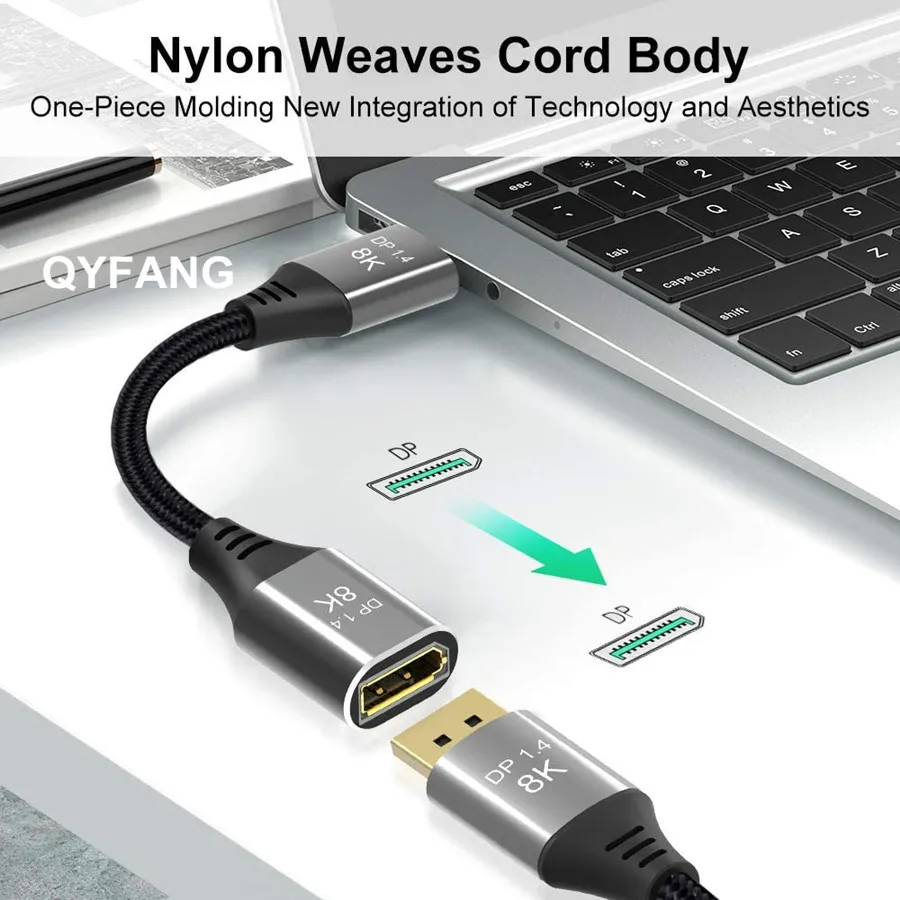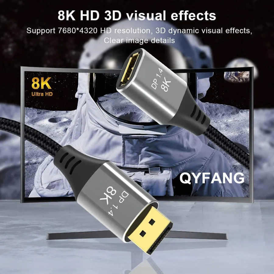 3: SUPERIOR 8k-este cable de extensión DP cumple con las especificaciones de la versión 1,4 y es compatible con 8K HD (7680x4320 @ 60Hz). Es compatible con 3840x2160 @ 144Hz/120Hz/60Hz, 2560x1440 @ 165Hz/144Hz/120Hz. Te ofrece una experiencia de juego sin roturas y fluida.