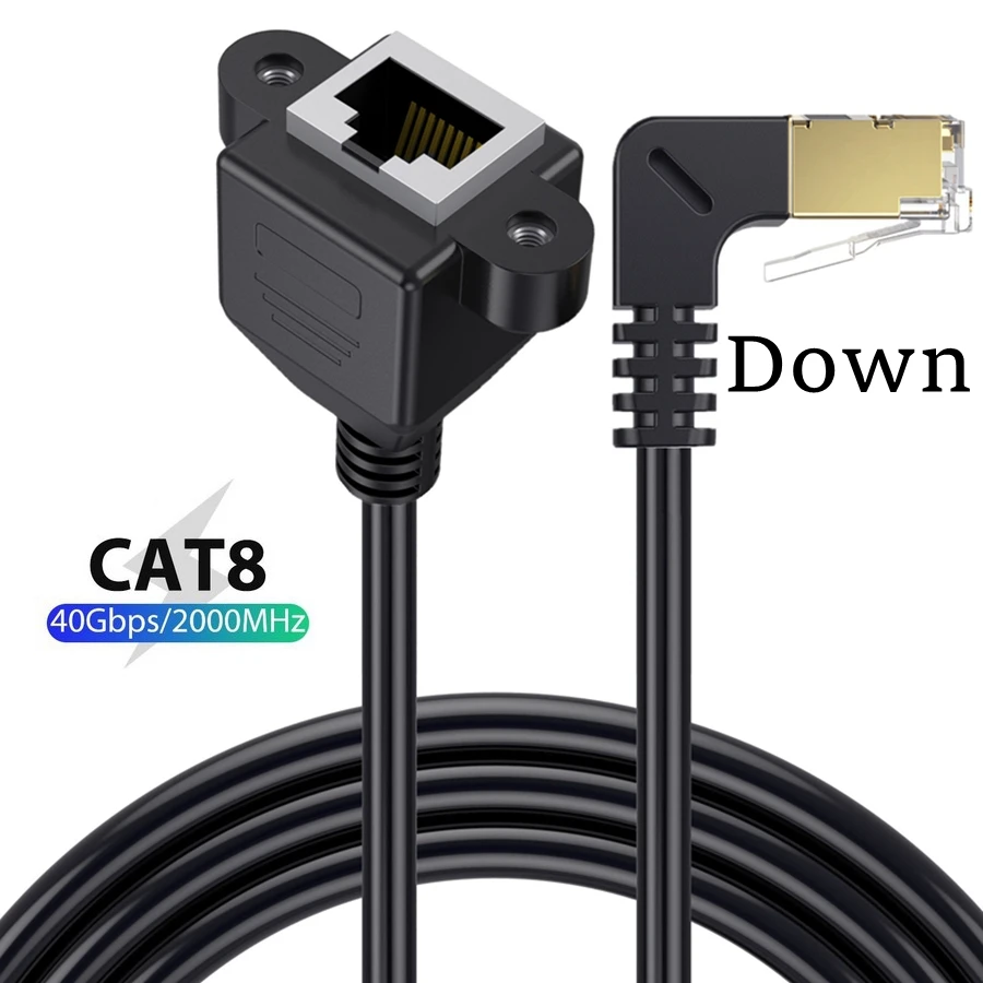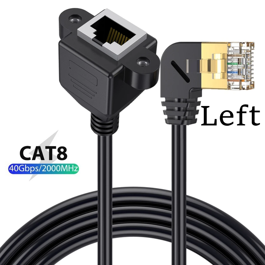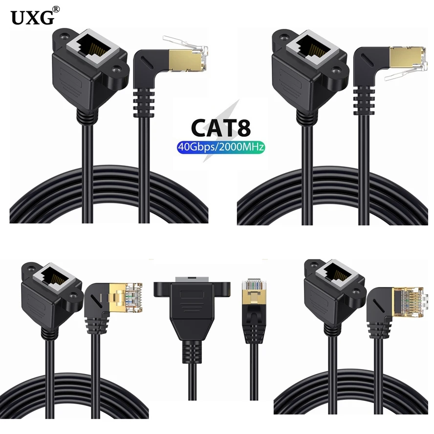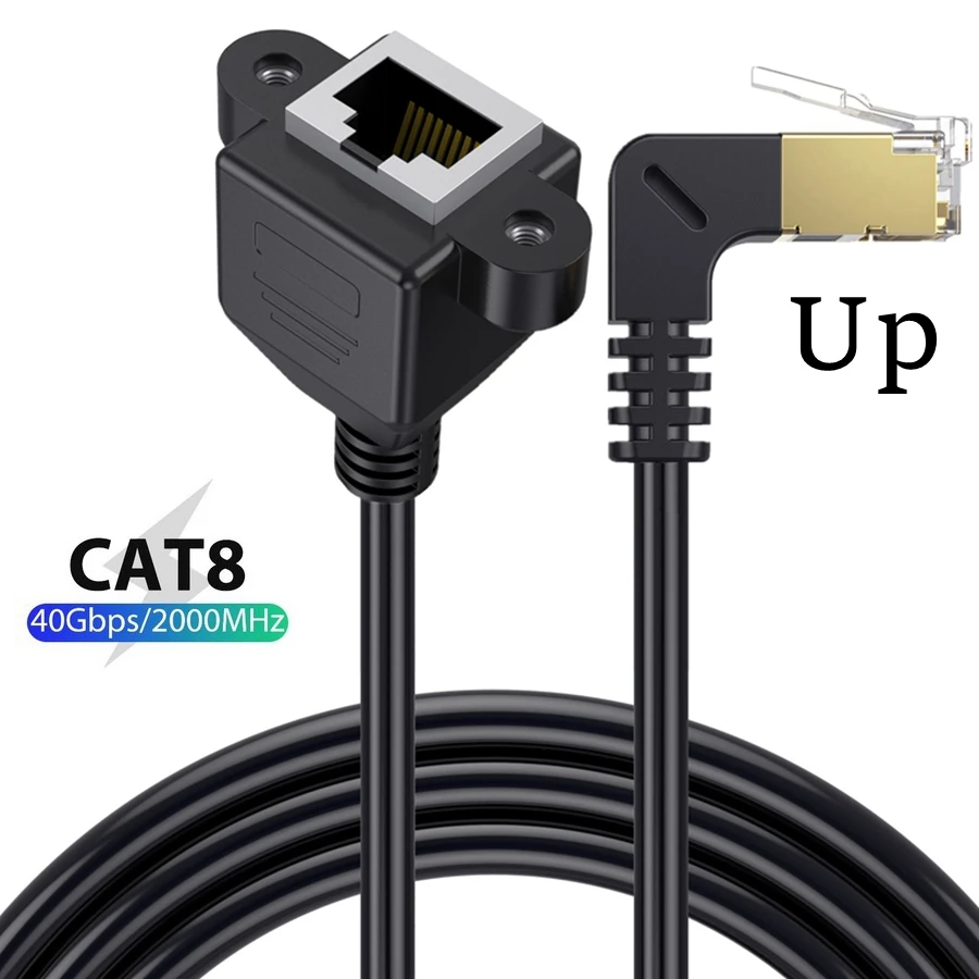 Comprar Cable de extensión de red Ethernet CAT8 de 90 grados, 8 pines, RJ45, 40Gbps, 2000MHz, macho a hembra, para ordenador portátil, PC, enrutador