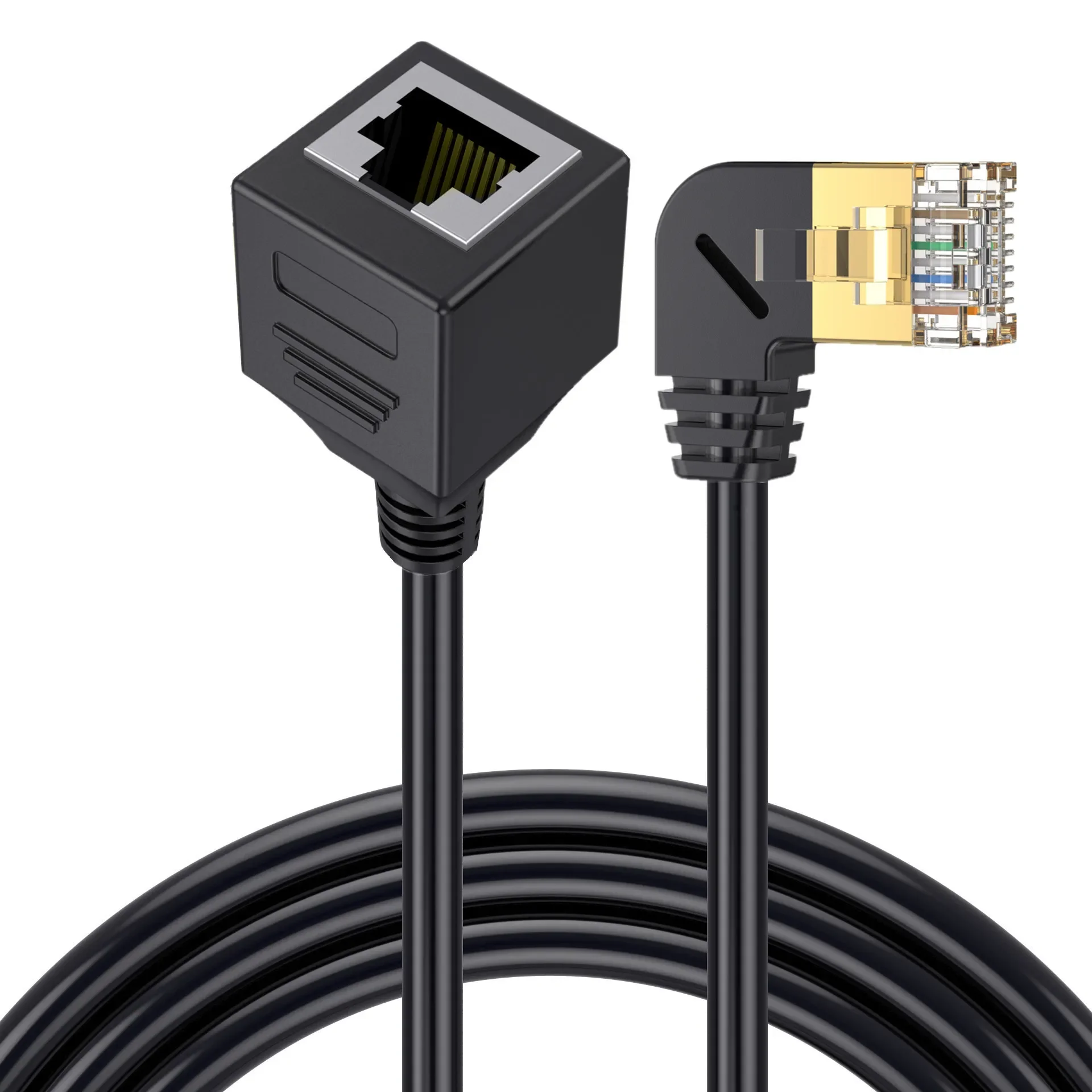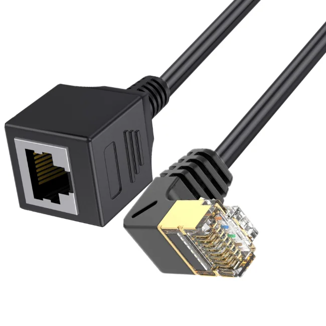 Comprar Cable de extensión de red Ethernet CAT8 de 90 grados, 8 pines, RJ45, 40Gbps, 2000MHz, macho a hembra, para ordenador portátil, PC, enrutador