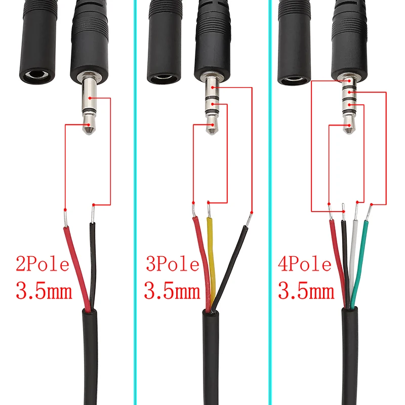 1 conector macho de 2,5/3,5mm/conector hembra Mono/estéreo AUX 2/3/4 polos a conector de cable desnudo DIY Cable de extensión de reparación de auriculares de Audio
