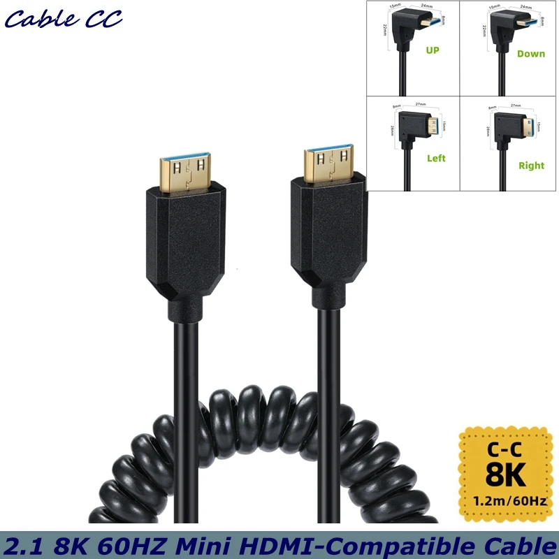 Comprar Cable de extensión de resorte, 8K @ 60Hz, 48gbps, Mini HDMI, compatible con Cable HD de extensión de codo C/M a C/M, versión 2,1