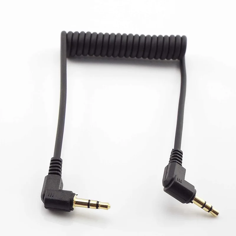 Comprar Cable de extensión de resorte de Audio macho de 90 grados, doble curva de 3,5mm, estéreo, para teléfono móvil Mp3 y altavoz auxiliar de coche