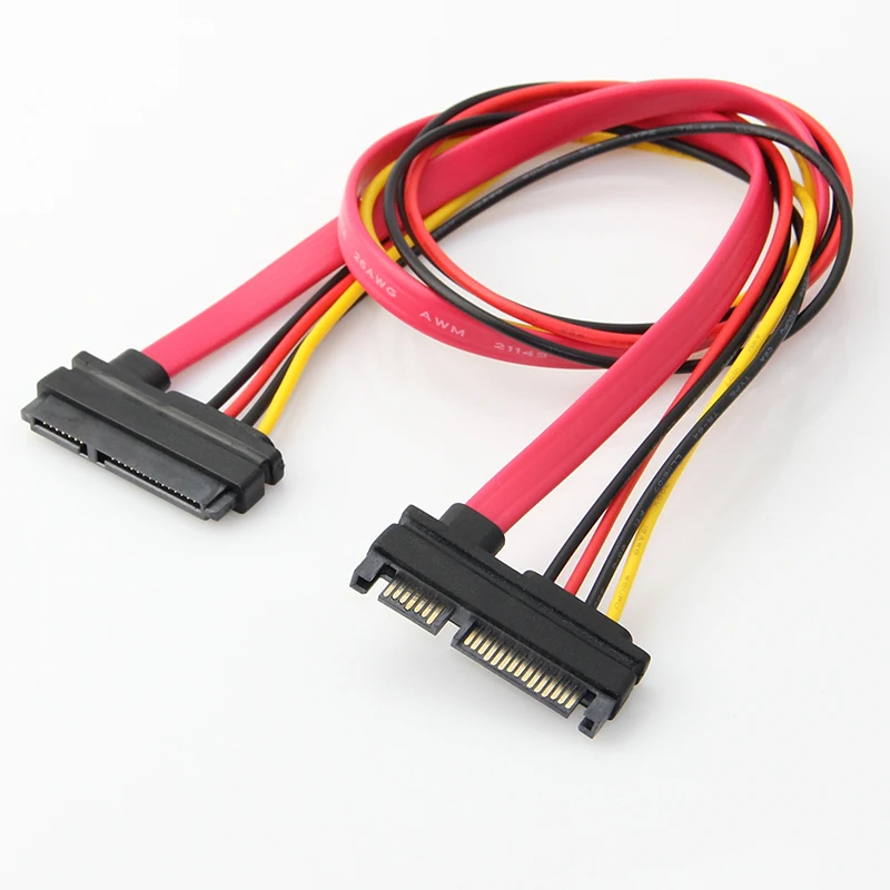 Cable de extensión SATA de 30cm, Cable macho a hembra de 7 + 15 Pines, transferencia de datos de 7P, fuente de alimentación de 15 P, Cable SATA de 22 Pines, línea SATA de 0,5 m