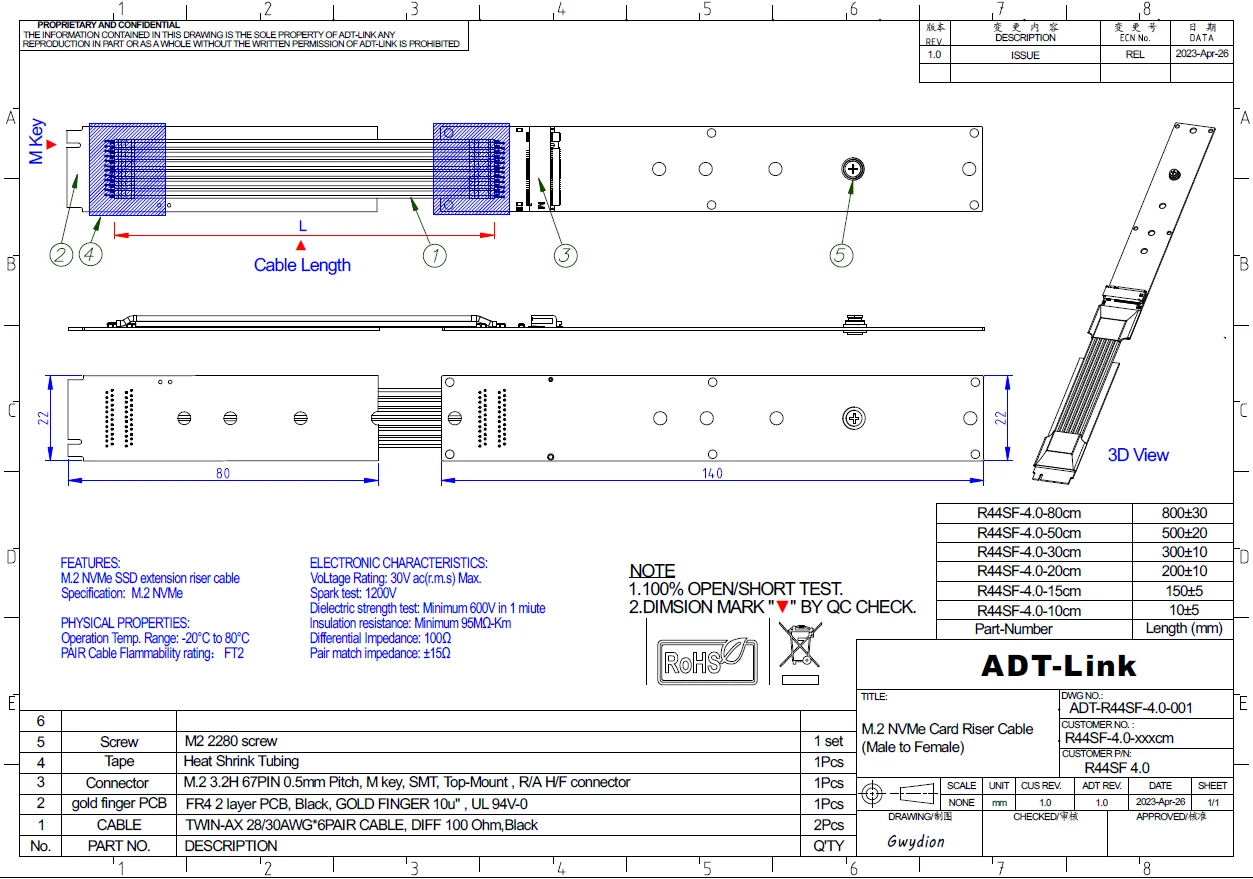 Nombre del producto:Cable de extensión M.2 NVMe Key M
