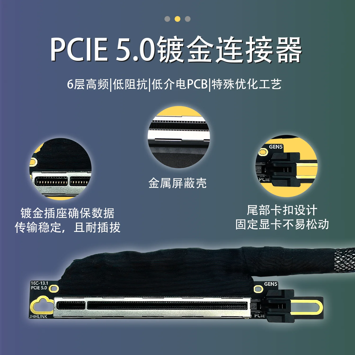 3, casquillo PCIE 5.0 chapado en oro con carcasa protectora de metal con clips de cola de cerdo.