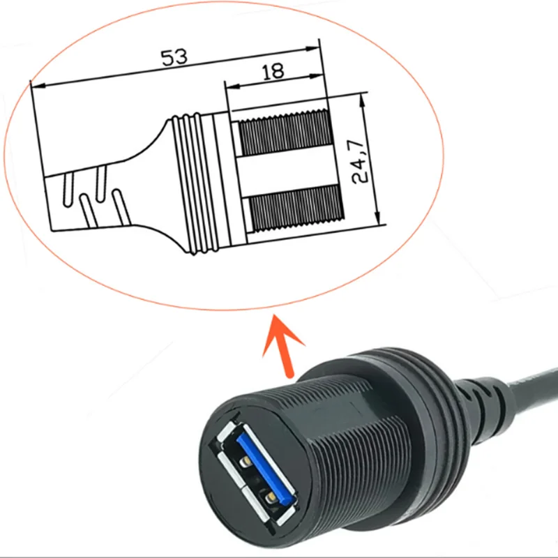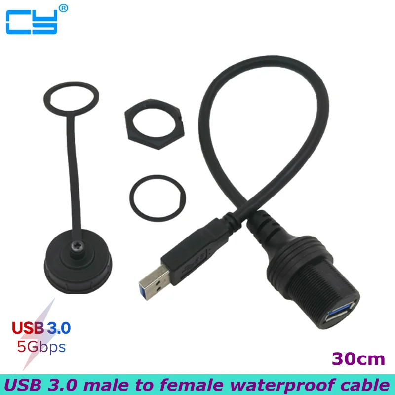 Cable impermeable, coche, yate, tablero de motocicleta USB3.0 macho a hembra AMAF cable de extensión de carga de datos 0,3 metros;