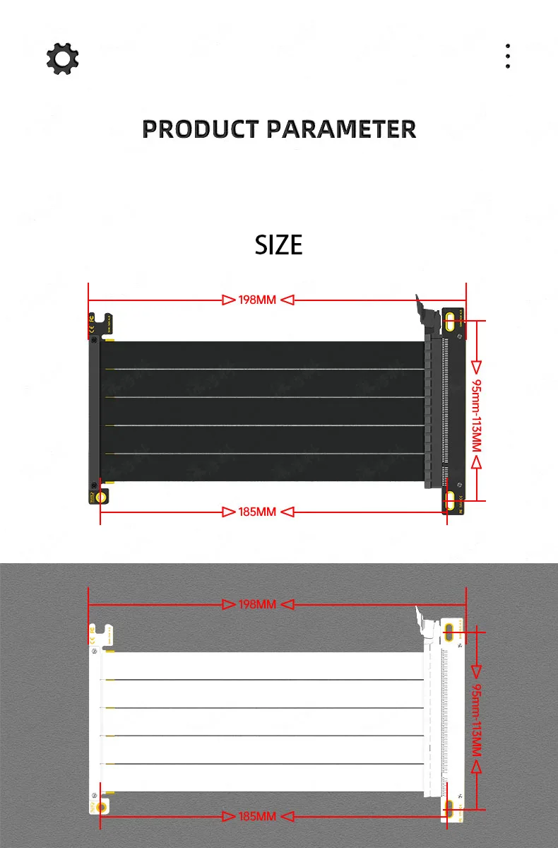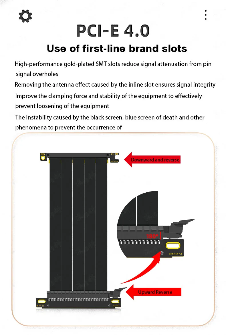 Cable elevador PCIe blanco/negro 5U Gold-Finger, extensor elevador PCI Express 4,0 x16, doble elevador inverso Gen 4 GPU para ITX A4 K39 K55 175MM /185MM /195MM
