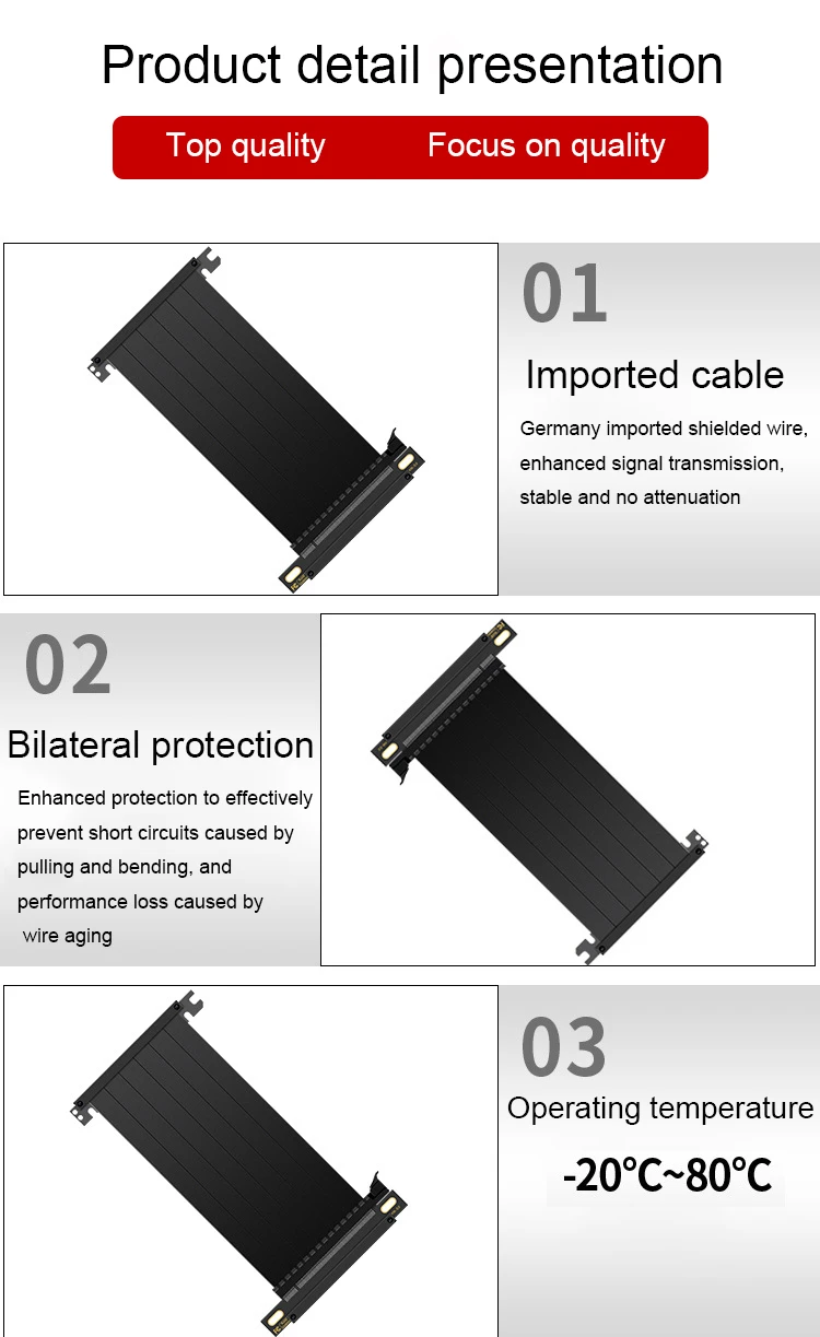 Transmisión DE ALTO rendimiento】: FULL-SPEED PCIE 3,0 X16 BANDA ANCHA entregar todo el rendimiento de PCIe 3,0 a su GPU, sin compromiso. Plug and play, no necesita controlador. Si su placa base y tarjeta gráfica están en el Protocolo 4,0, Nuestro cable de extensión solo se puede usar normalmente cuando la tarjeta gráfica está directamente conectada a la placa base y configurada PCIe a gen3 EN LA BIOS.【Estabilidad y sin perdidas】: El diseño blindado EMI de la tarjeta extensora puede reducir la interferencia electromagnética y proporcionar una buena estabilidad de transmisión. De lo contrario, el cable Premium (28/30 AWG) y el núcleo están hechos de proceso de estañado de cobre puro, lo que garantiza que la señal sea a toda velocidad, estable y casi sin transmisión de atenuación.【Ampliamente compatible】: Compatible con todas las tarjetas gráficas producidas después de 2015. Como GTX1080, GTX1080Ti, RTX2060, RTX2070, RTX2080, RTX2080Ti, RTX3080,RTX3090, RX570, RX580, RX590, RX5700 XT, RX VEGA 56, RX VEGA 64, etc. Tarjeta gráfica profesional u otra tarjeta gráfica PCIe x16.【Cable de extensión inversa dual】: Tapa a prueba de polvo y puntos de soldadura de alta calidad y contactos chapados en oro para una mejor conectividad y uso prolongado.【Cable elevador actualizado】: Este cable de extensión para tarjeta gráfica le permite obtener una nueva vista de su GPU, lo que facilita el montaje vertical en carcasas compatibles. Además, el diseño seccional flexible permite orientaciones agresivas y un mejor flujo de aire.