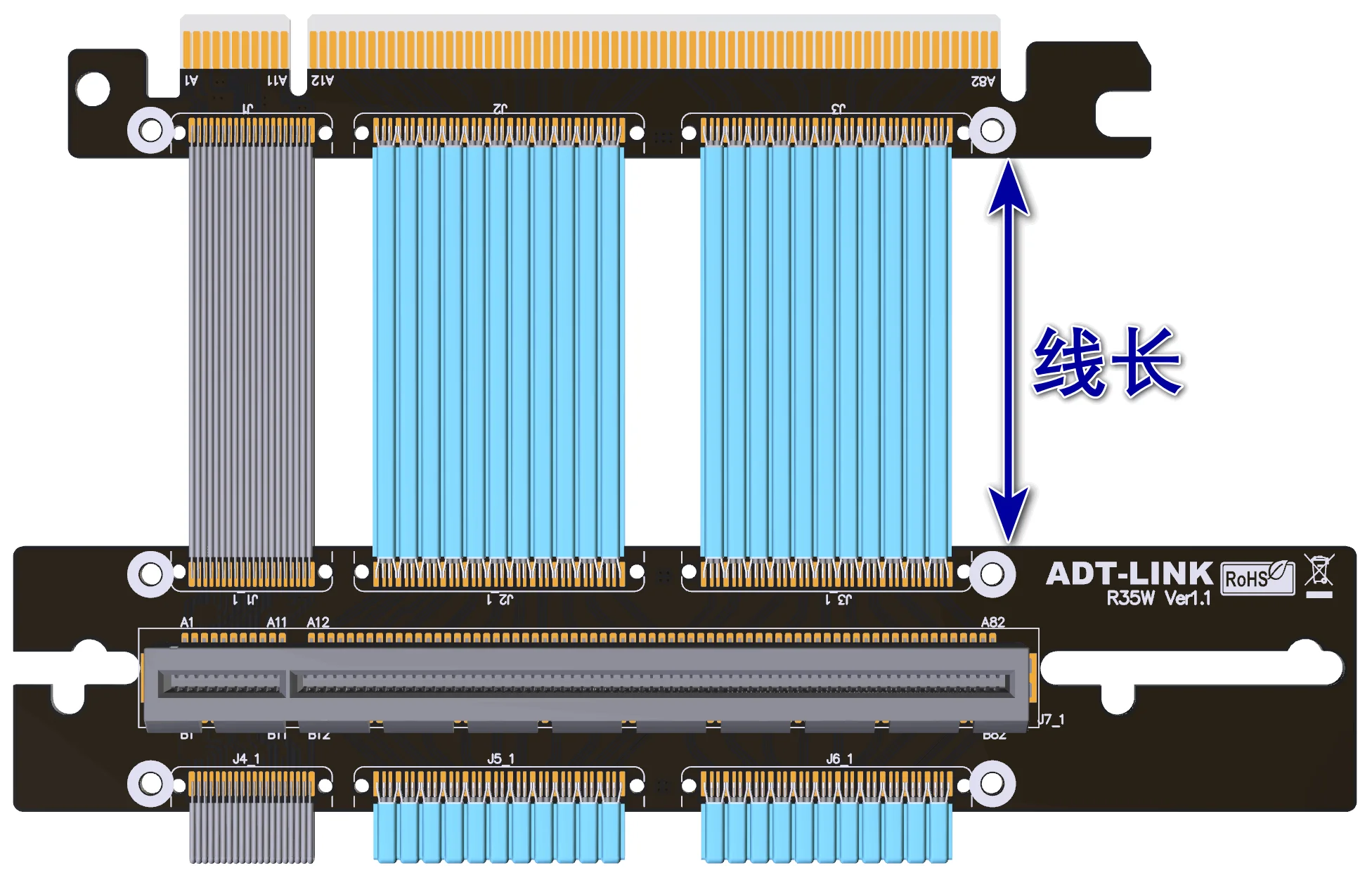 Cuanto más largo es el cable, más evidentes son las tres anomalías principales: atenuación de la señal, interferencia de la señal y retardo de la señal, que son las principales causas de pérdida. La longitud de línea medida del producto es inferior a 25 centímetros, y PCIe 4,0 puede funcionar a toda velocidad. Si supera los 30 centímetros, la señal decaerá.