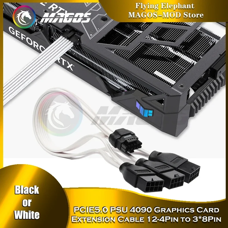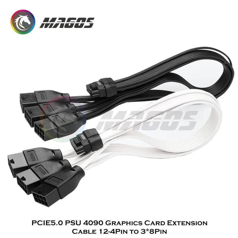 Comprar Cable de extensión de tarjeta gráfica PCIE5.0 PSU, 16 pines a 3*8 pines, 600W, 4090, Cable adaptador de módulo GPU, línea de silicona 16AWG, negro/blanco