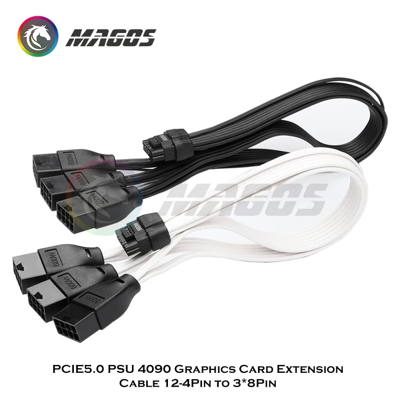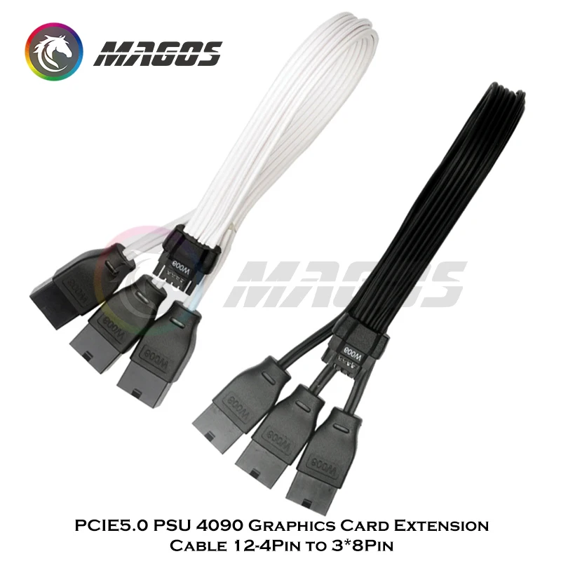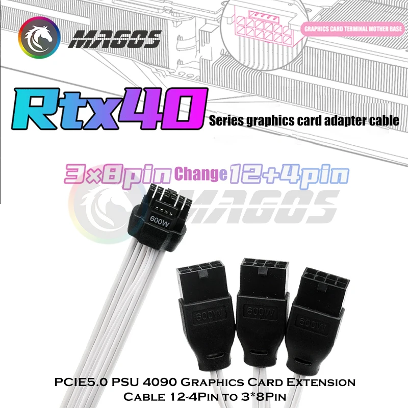 Comprar Cable de extensión de tarjeta gráfica PCIE5.0 PSU, 16 pines a 3x8 pines, 600W, 4090 GPU, Cable adaptador de módulo, 16AWG, línea de silicona, negro/blanco