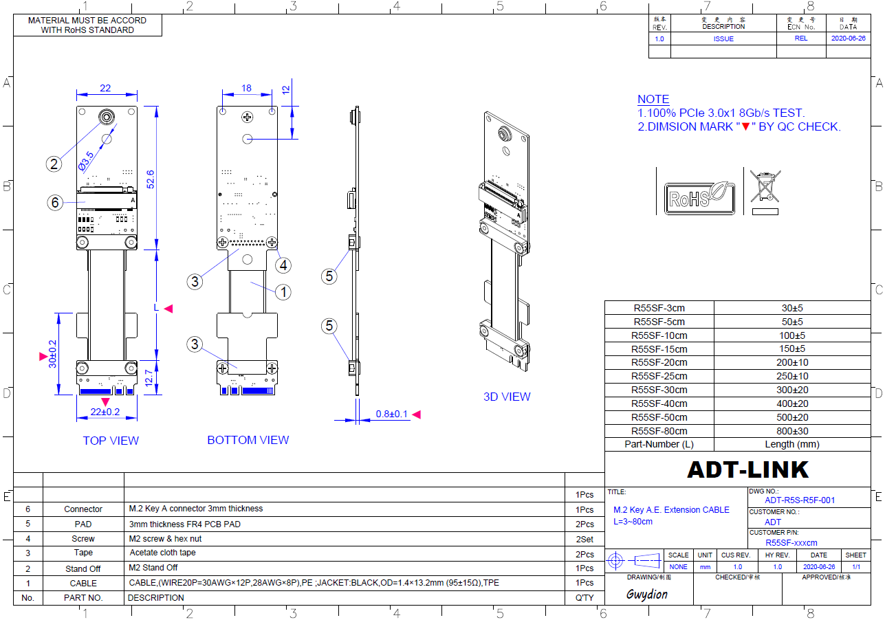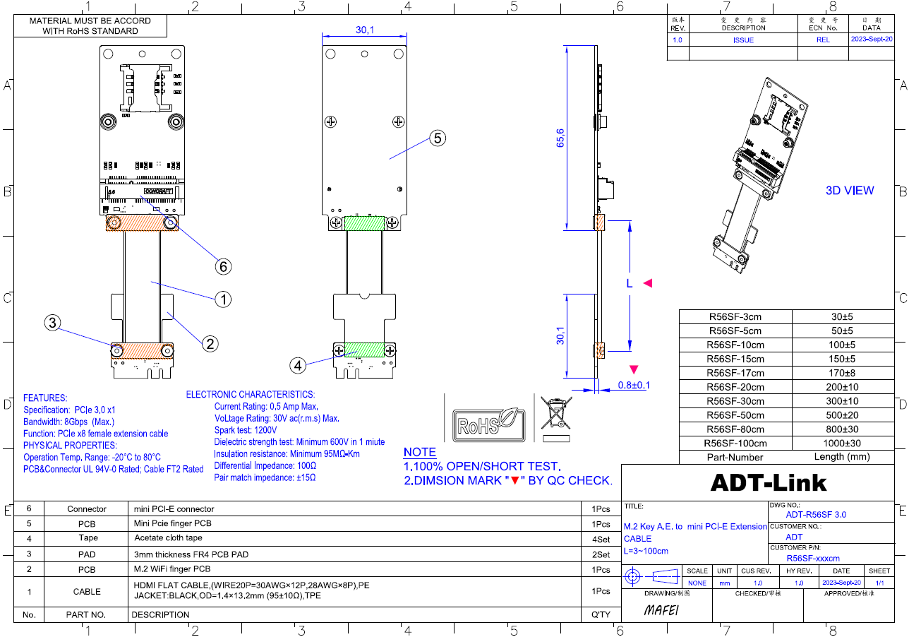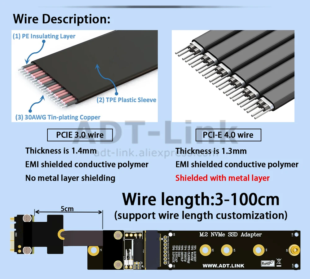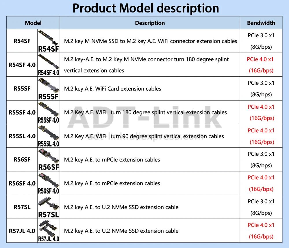 Comprar Cable de extensión de tarjeta WiFi ADT R56SF 4,0 M.2 Key A.E., extensor de tarjeta de red inalámbrica mini-pcie mPCIe, soporte elevador PCIe 4,0 3,0