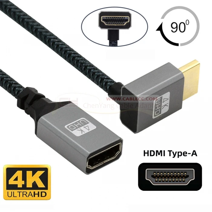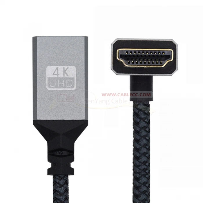 En ángulo de 90 grados HDMI 1,4 tipo A macho a hembra Cable de extensión compatible con HDTV 4K 60Hz 3D