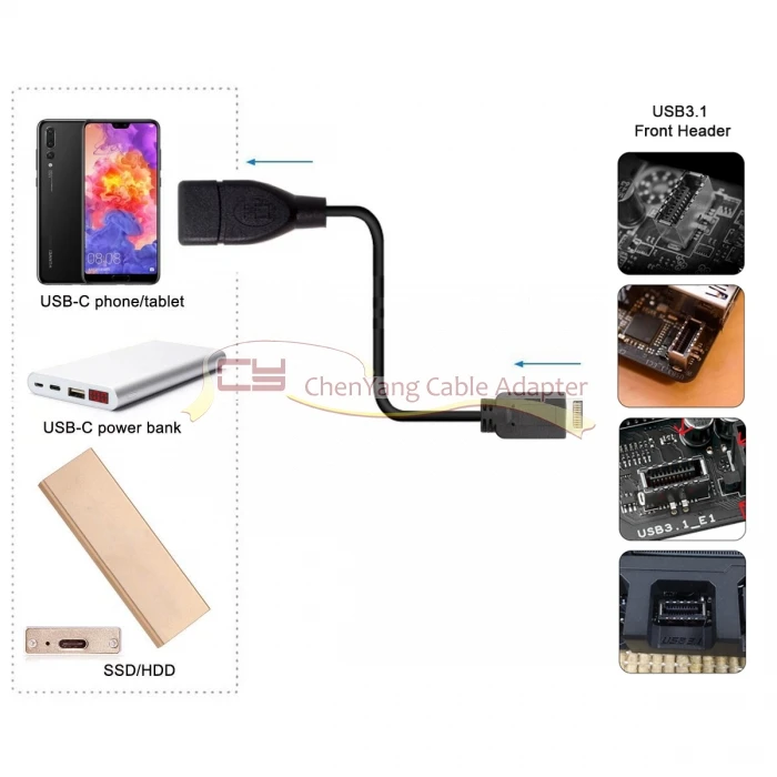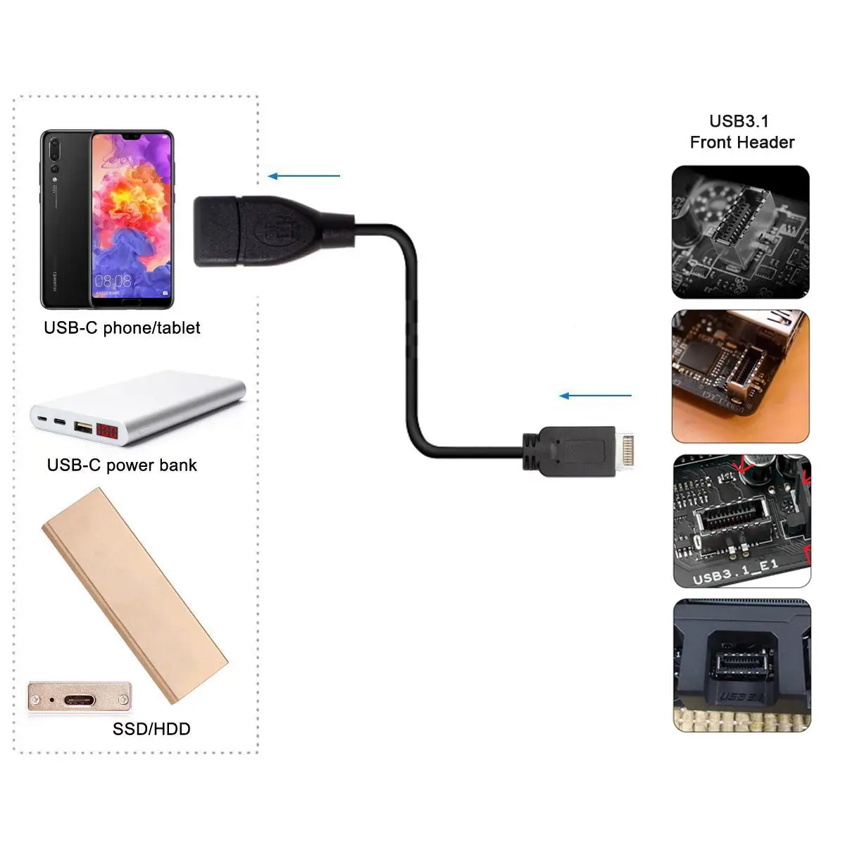 Cabezal de panel frontal USB 3,1 a cable de extensión hembra tipo A USB 3,0 de 20cm