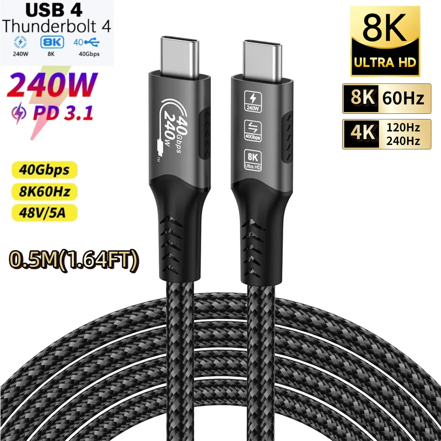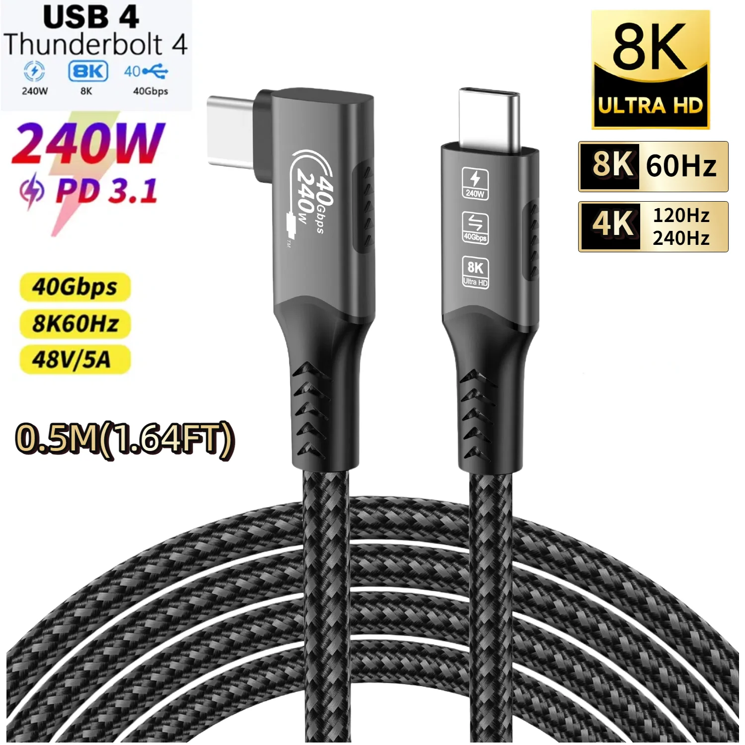 Cable de extensión USB C 4 8K Cable de carga rápida extensor macho a hembra tipo C vídeo UHD 40Gbps 240W PD3.1 con Thunderbolt 4/3