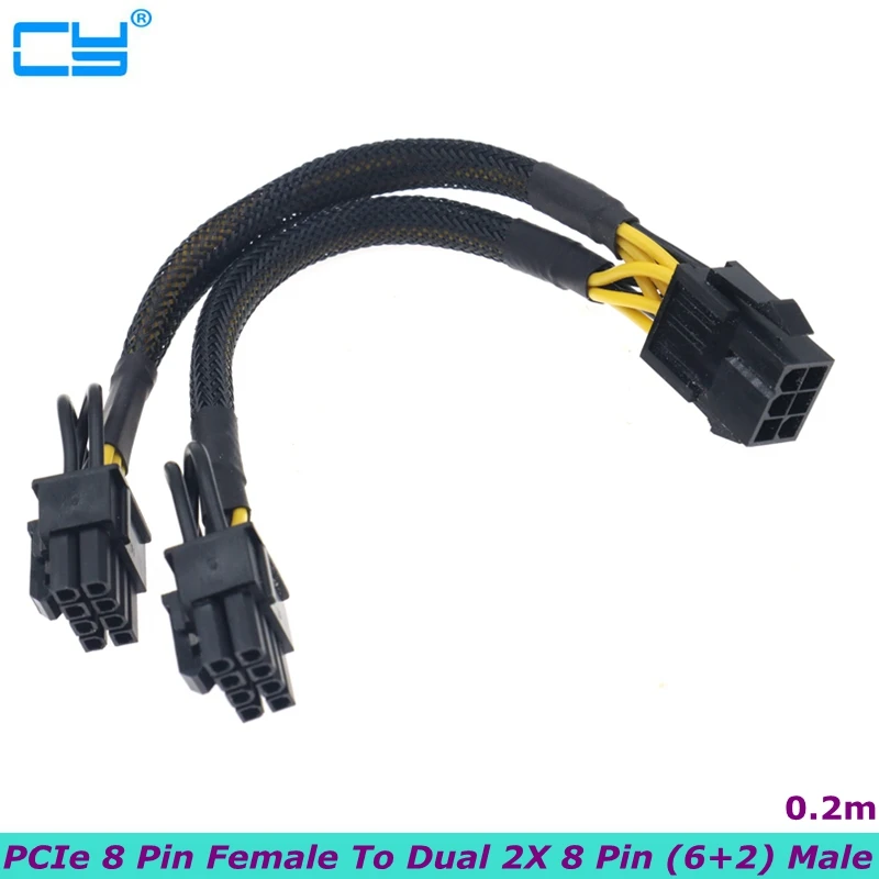 Comprar Cable de extensión trenzado Y divisor de la mejor calidad, GPU PCIe, 8 pines, hembra a Dual, 2x8 pines (6 + 2), macho, PCI Express, 20cm