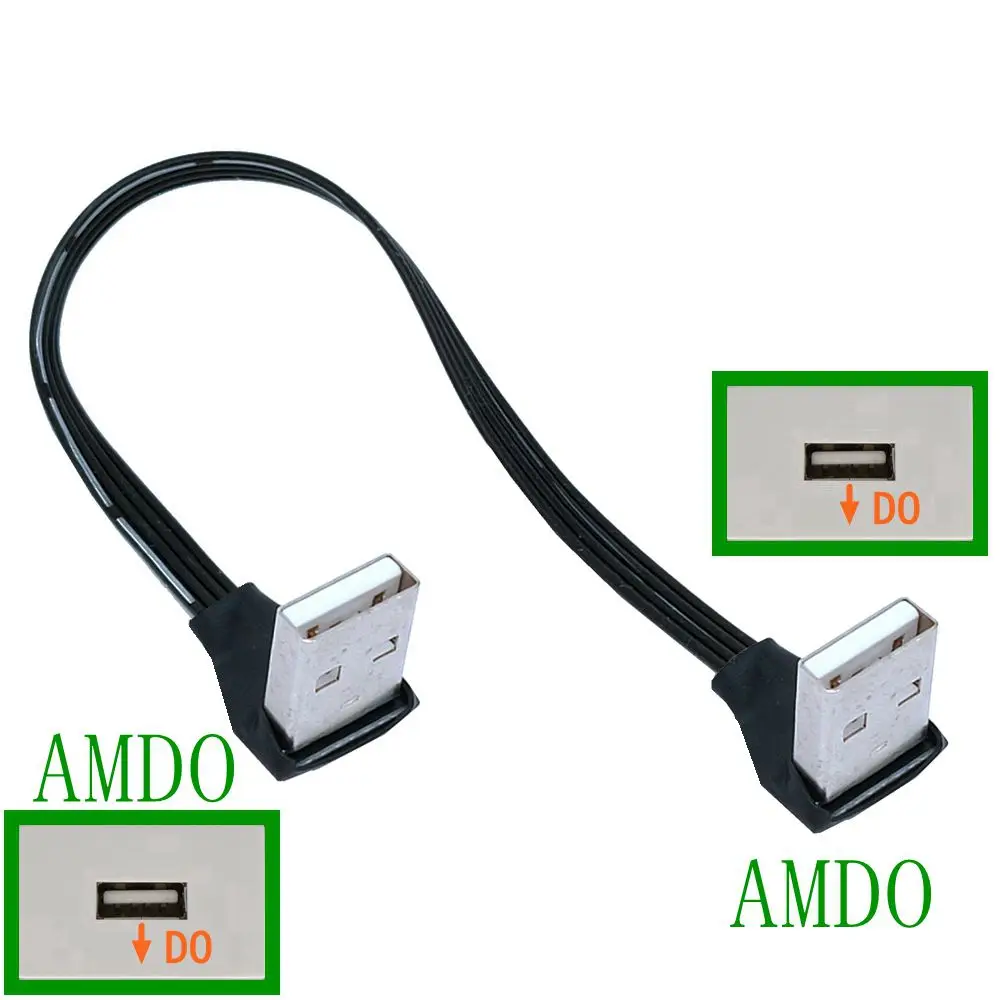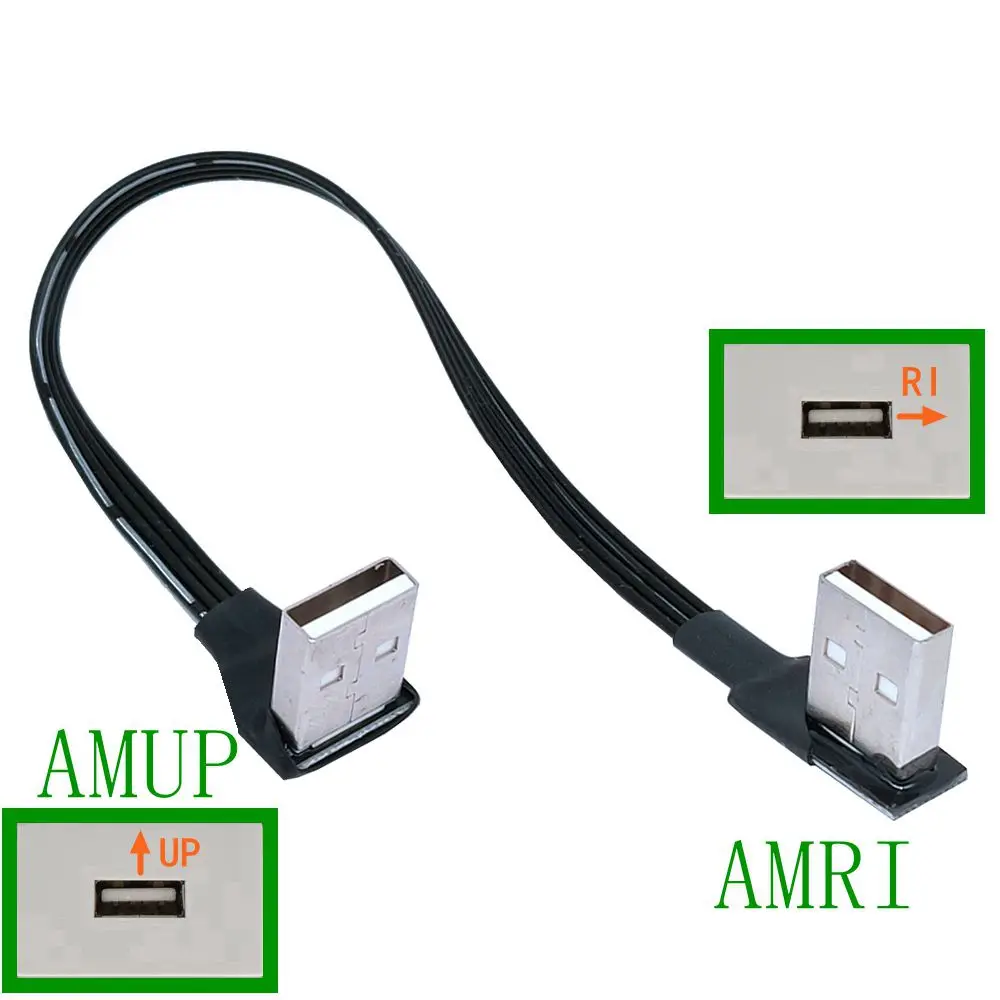 Cable de extensión USB de 1M y 90 grados, Cable corto USB 2,0 para Smart TV PS4, Cable de extensión de datos de velocidad macho a macho y hembra