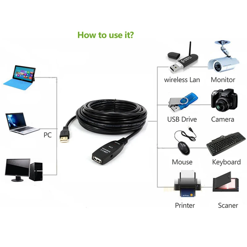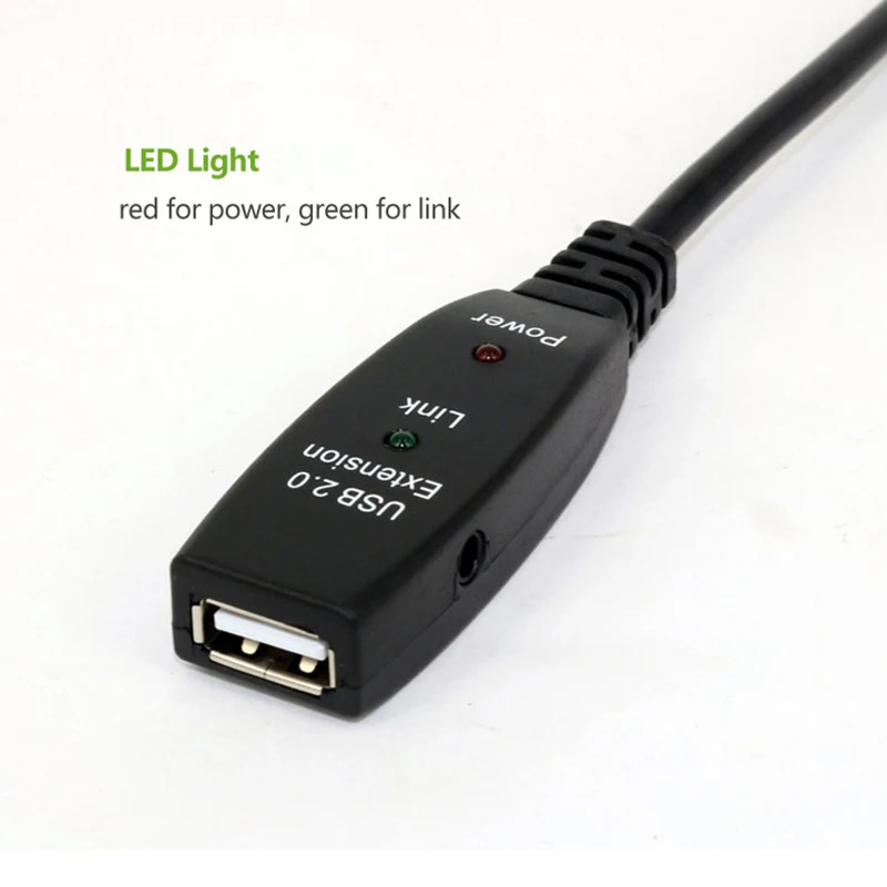 Comprar Cable de extensión Usb 2,0 con adaptador de corriente, amplificador de señal para disco duro Webcom TV Box, 30M, 5m, 10m, 15m, 20m