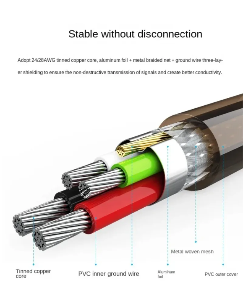 8.Los núcleos de cables conductores para cobre de alta pureza, con una aleación a base de estaño caliente, pueden fortalecer eficazmente la velocidad de transmisión de la señal y una menor atenuación producida en el proceso de transmisión de la señal.