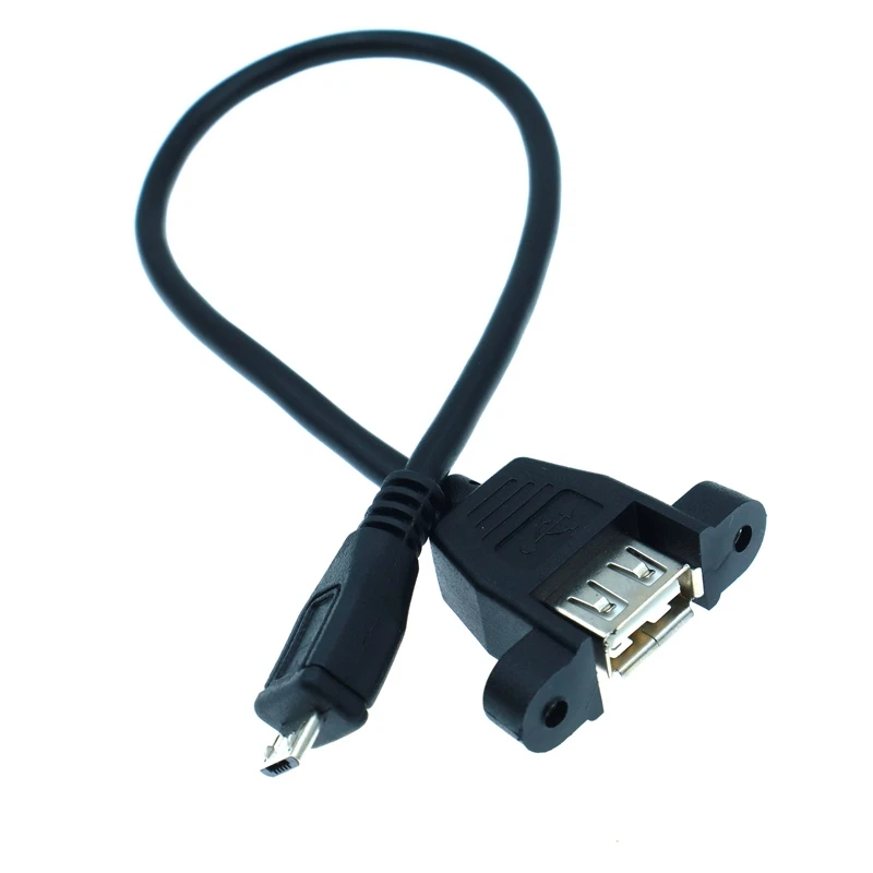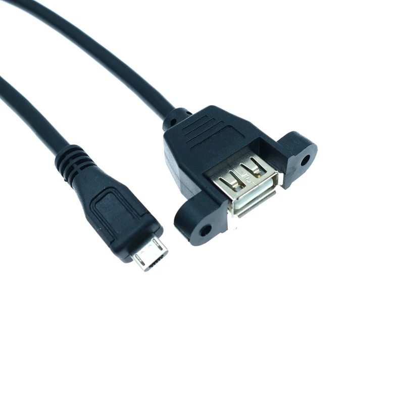 Comprar Cable de extensión USB 2,0 hembra a Micro macho, conector adaptador de bloqueo de agujero de tornillo de montaje en Panel para ordenador, 30cm