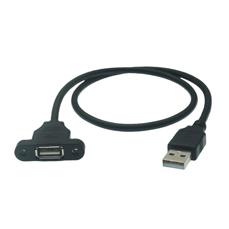 Comprar Cable de extensión USB 2,0 M/f, Cable de datos de carga macho a hembra con lámina de montaje en Panel de tornillo + espaciado blindado trenzado de 28mm