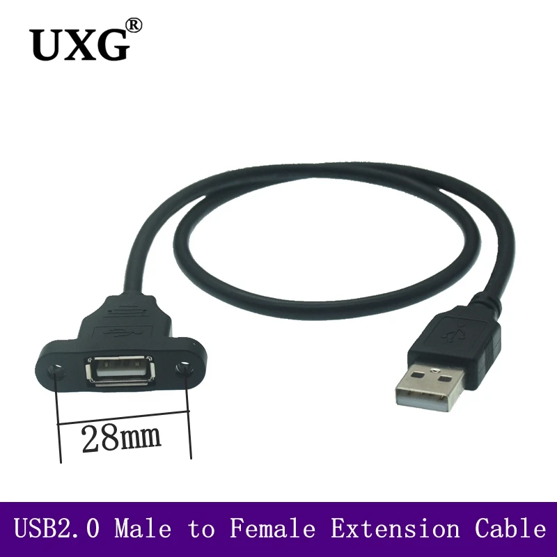 Comprar Cable de extensión USB 2,0 macho a hembra, Cable de datos de carga con Panel con tornillos de montaje, lámina y espaciado blindado trenzado de 28mm, 1 Uds.