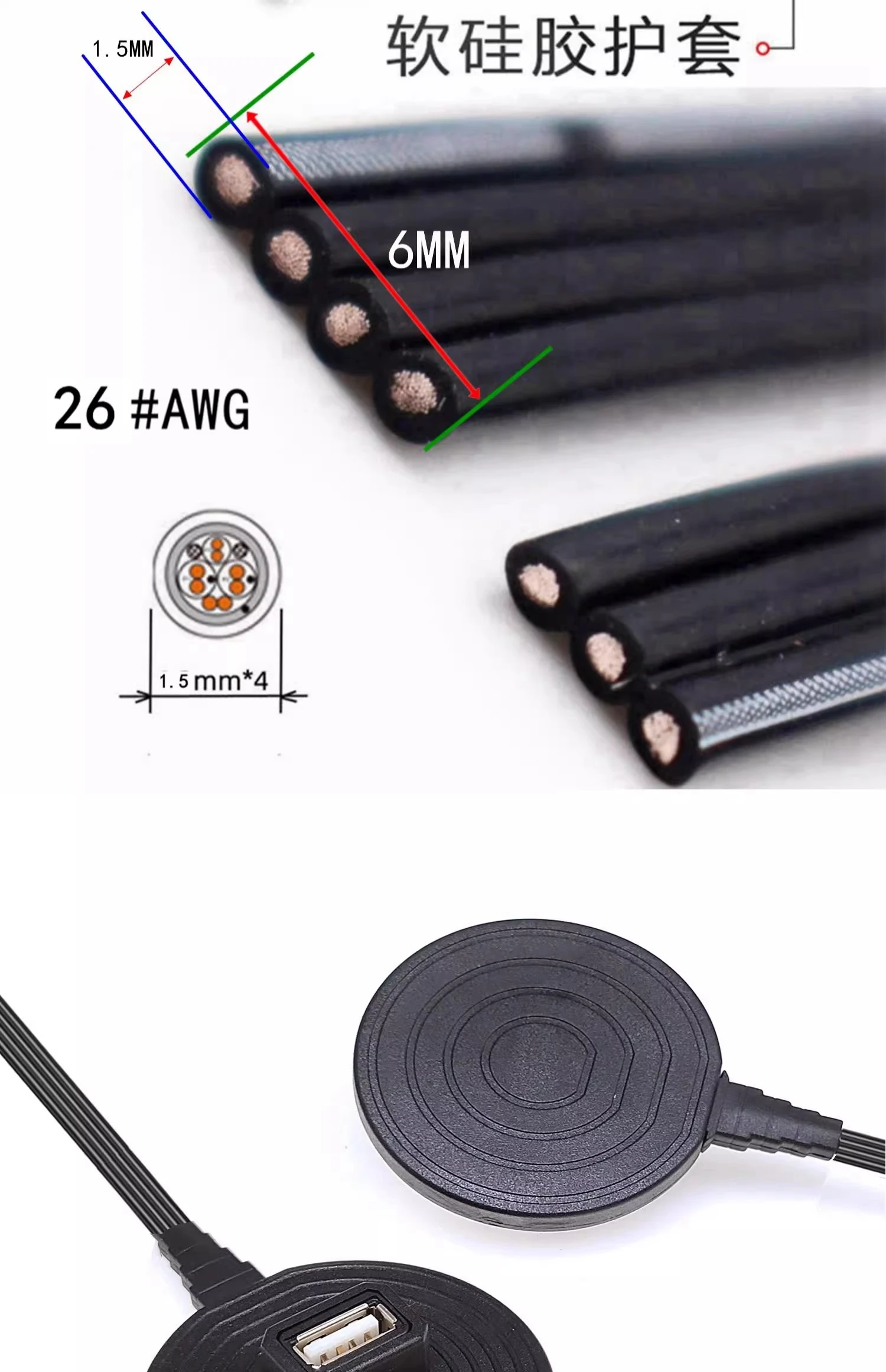 Cable de extensión USB 2.0 plano de 0,2 M-1 M con lámina base de 0,2 M, 90 grados arriba, abajo, izquierda y derecha