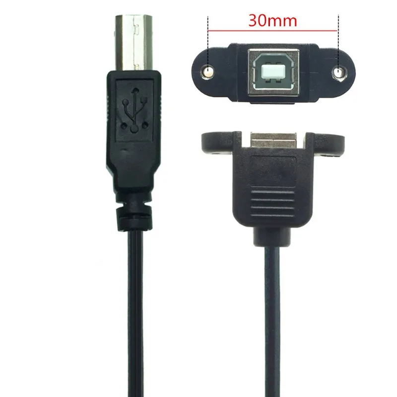 Cable de extensión USB 2,0 tipo B macho a hembra Cable de datos montaje en Panel para Cable de impresora con orificio para tornillo 0,3 M 0,5 M