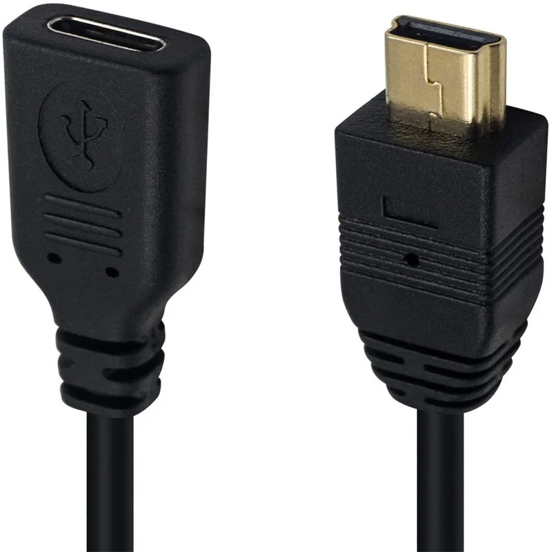Dispositivos aplicables al producto: mini dispositivos de interfaz como teléfonos móviles, tabletas, cámaras digitales, MP3, MP4, etc. El cable de datos de interfaz tipo C se puede convertir en un cable de datos macho mini5p para lograr funciones de transmisión de datos y carga para dispositivos de interfaz mini5p