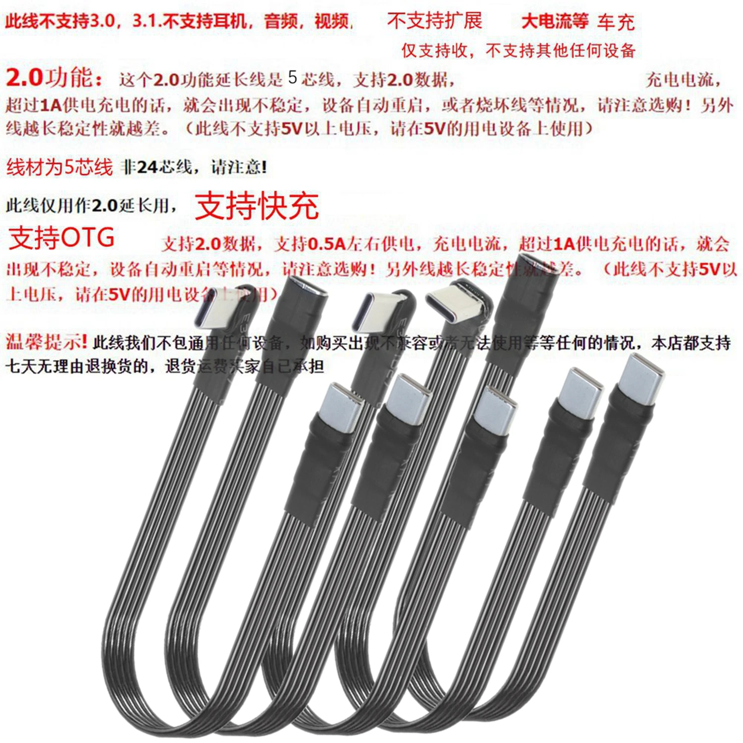 USB 2.0 Type C to Type C Extension Cable 90° Adapter FPC FPV Band Flat USB C Cable 3A 5CM-2M