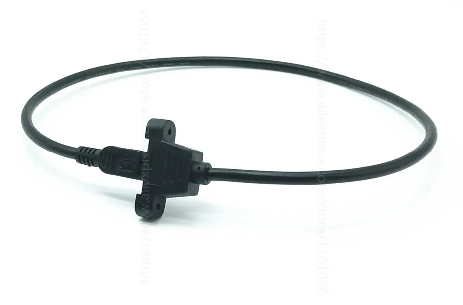 Tipo de montaje en panel Mini USB Cable adaptador de extensión macho a hembra de 5 pines con tornillos 50cm Tipo de montaje en panel Tornillos distancia: 28,00mm 4 cables conectados en el interior. Longitud: 0,3 m/0,5 M