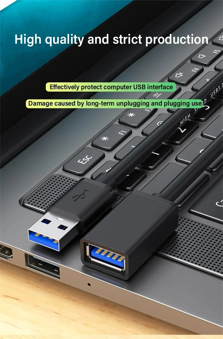 2. Con una trenza de alambre de metal en el interior, el extensor de cable USB A es flexible y resistente a tirones y arrastrar.