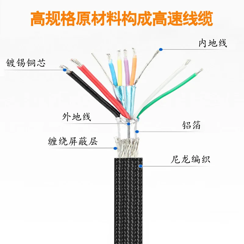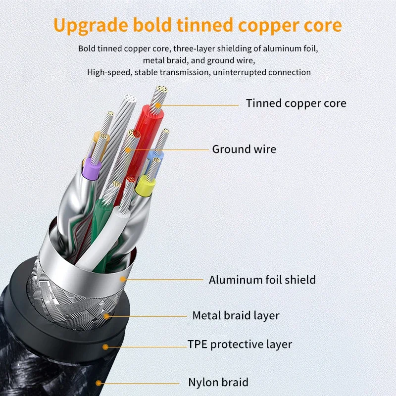 [Rendimiento de blindaje]: Doble blindaje (blindaje trenzado + blindaje de papel de aluminio), que puede reducir en gran medida la interferencia electromagnética y la interferencia de radio, y transmitir datos de manera estable
