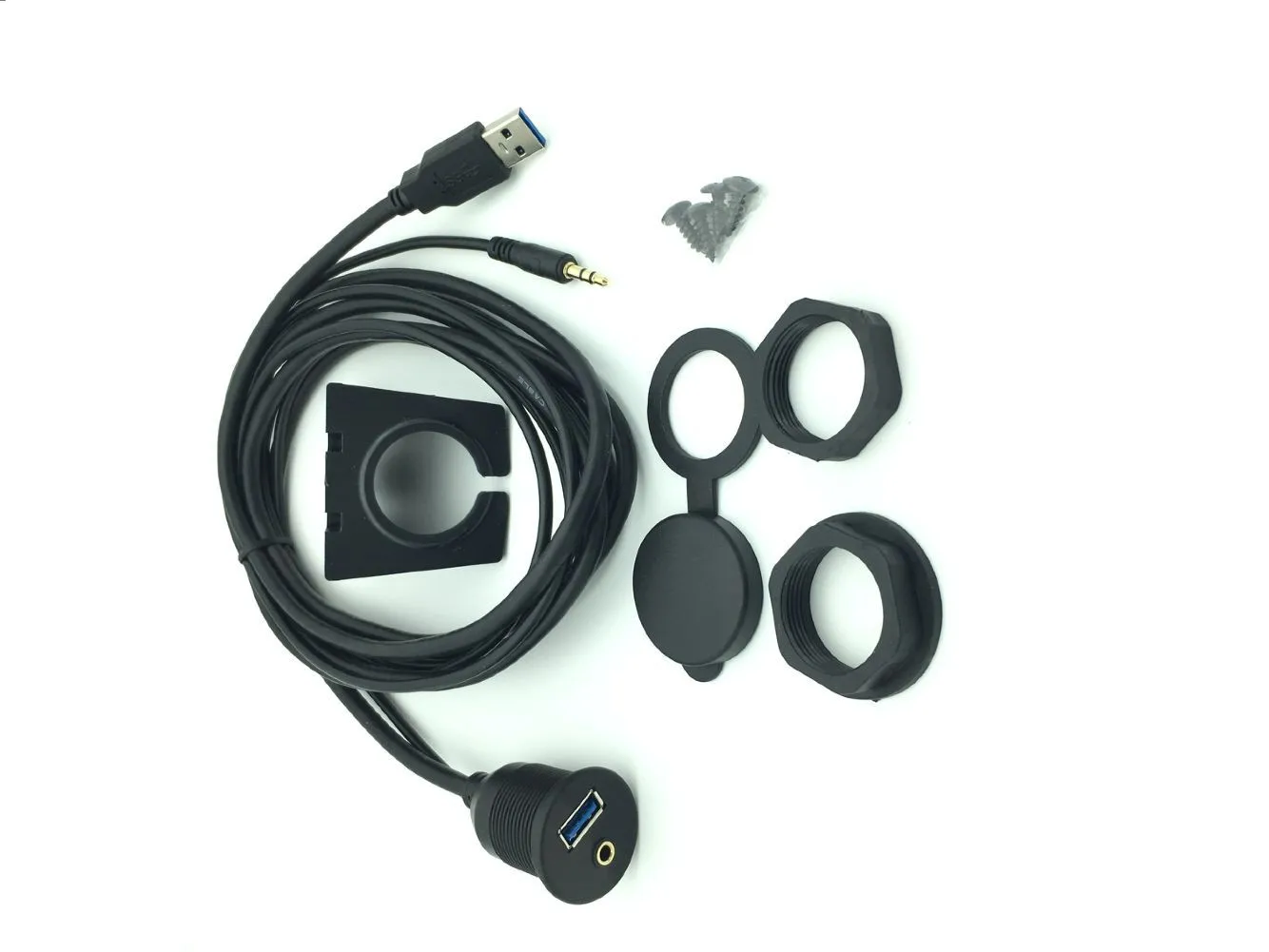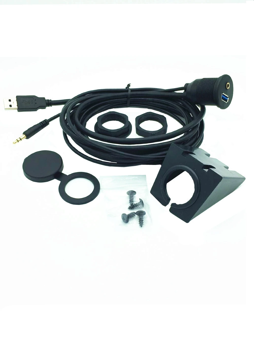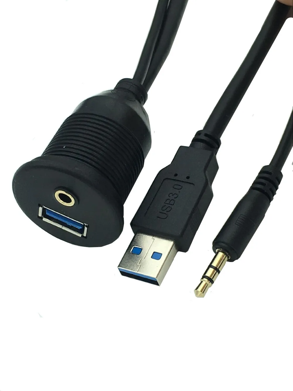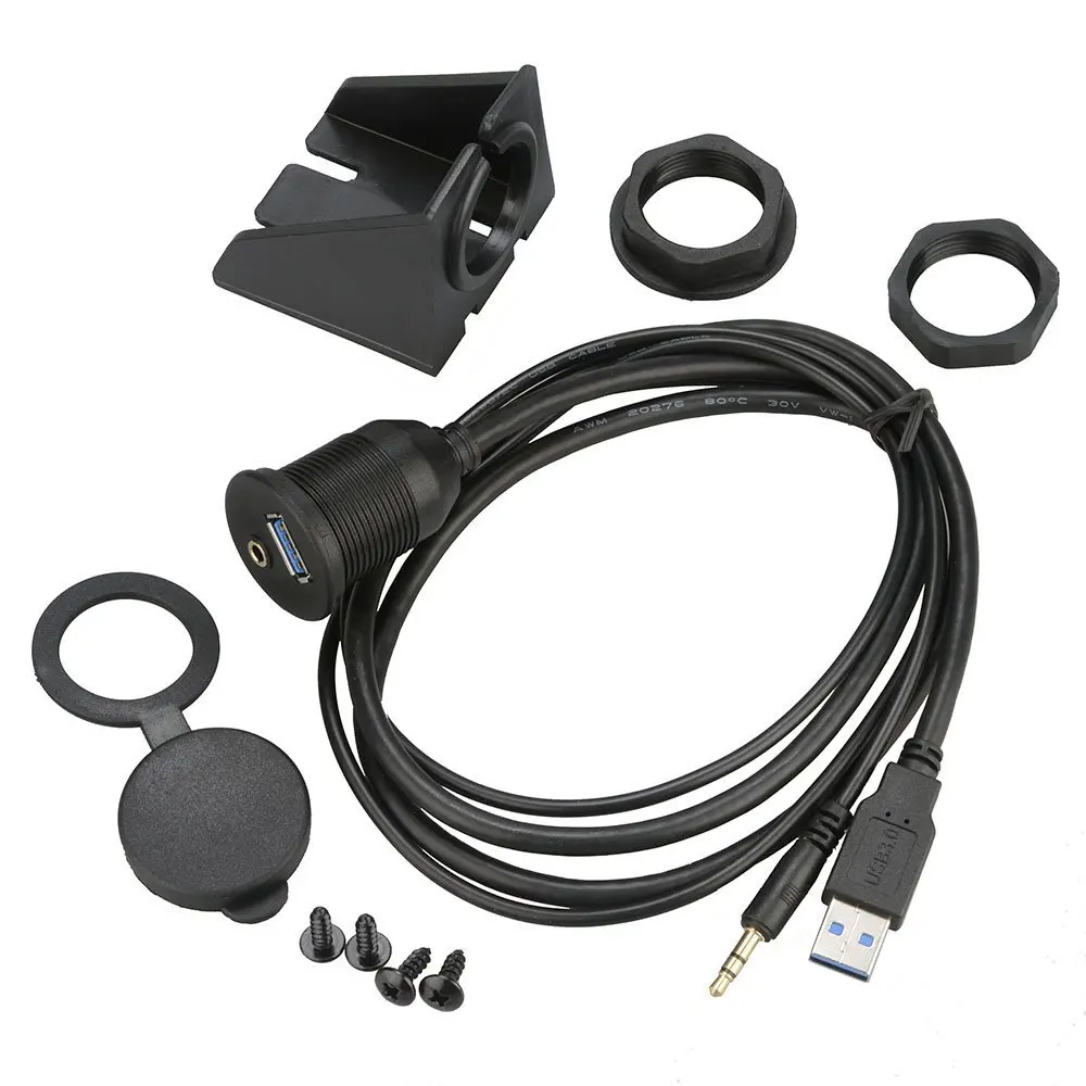 Comprar Cable de extensión USB 3,0 de 1m para coche, barco y remolque, 2,0 y 3,5mm a USB y 3,5mm, Cable de montaje empotrado, placa de Dial de 3 pies